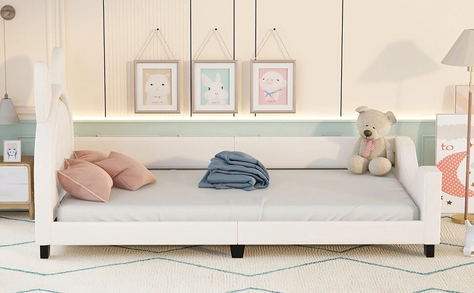 Twin Size Upholstered Daybed with Carton Ears Shaped Headboard, White This platform bed showcases a low-profile silhouette and clean lines for a modern look in your bedroom or guest room. The frame is built from pine wood and MDF, and it rests on splayed legs with a light finish. This bed is upholstered with a medley of colors to choose from that best suits your style. The headboard in the shape of carton ears provides you with a soft backrest which is cute and practical. Description Material Pine Wood+MDF+PU Leather Size Twin Color White Numbers of Package 1 Spring Box No Need Assembly Required Yes Origin Vietnam Dimensions Overall Product Dimension 80.3''L*40.9''W*37''H Package Dimension Please refer to the Specification ... Plc2023go Best choice for your sweet home Twin Size Wooden Captain Bed with Built-in Bookshelves,Three Storage Drawers and Twin Size Upholstered Daybed with Carton Ears Shaped Headboard, White This platform bed showcases a low-profile silhouette and clean lines for a modern look in your bedroom or guest room. The frame is built from pine wood and MDF, and it rests on splayed legs with a light finish. This bed is upholstered with a medley of colors to choose from that best suits your style. The headboard in the shape of carton ears provides you with a soft backrest which is cute and practical. Description Material Pine Wood+MDF+PU Leather Size Twin Color White Numbers of Package 1 Spring Box No Need Assembly Required Yes Origin Vietnam Dimensions Overall Product Dimension 80.3''L*40.9''W*37''H Package Dimension Please refer to the Specification Bed Inner Dimension 75''x 39'' Total Height 37'' Number of Bed slats 10pcs Overall Product Weight 77lb Bed Weight Capability 250lb Recommend Bed Mattress Thickness 6'' ??[Sturdy Frame] Constructed with a durable wood frame with high-quality hardware that provides a strong and sturdy bed. ??[Convenient Design] Built low to the ground to help your little one get in and out of bed easily. Generous padding ensures long-lasting comfort and support while sitting up to read or watch TV. ??[Lively Color] Perfect for your little one's bedroom, this twin daybed shows off lively color upholstery with a playful scalloped silhouette for a look both you and your little one will love. ??[Solid Construction] That's why all products are built with long-lasting materials to ensure they stand up to years of jumping and playing. Item Specifics Brand Unbranded Color White Frame Material PU Leather Type Bed Frame Compatible Mattress Size As described Payment If you do not have a PayPal account, to get started and buy your first item with us is very easy. Simply click on the 'Buy It Now' button and follow the eBay checkout steps. Select PayPal as the payment method you then will be given the chance to enter your card details in to PayPal's secure checkout in order to pay for your order. Shipping 2. We provide three kinds of shipping for choice. Shipping way depend on delivery address. Returns If an unit is received defective, of course we take it back or replace it. If the unit is received as expected, we must charge for our expenses if you want to send it back. We have to charge for the work of handling, retesting and restocking. Contact Us Dear buyer, Thank you for visiting my store! Our warehouses are located in many regions around the United States. According to the customer's delivery address. Use USPS/UPS/DHL logistics transportation service. Prioritize the best quality logistics solutions to transport packages. Ensure package delivery time, At the same time. Have any after-sales problems, Feel free to contact us. At your service Plc2023go Best choice for your sweet home DESCRIPTION PAYMENT SHIPPING RETURN POLICY CONTACT US Twin Size Wooden Captain Bed with Built-in Bookshelves,Three Storage Drawers and Twin Size Upholstered Daybed with Carton Ears Shaped Headboard, White This platform bed showcases a low-profile silhouette and clean lines for a modern look in your bedroom or guest room. The frame is built from pine wood and MDF, and it rests on splayed legs with a light finish. This bed is upholstered with a medley of colors to choose from that best suits your style. The headboard in the shape of carton ears provides you with a soft backrest which is cute and practical. Description Material Pine Wood+MDF+PU Leather Size Twin Color White Numbers of Package 1 Spring Box No Need Assembly Required Yes Origin Vietnam Dimensions Overall Product Dimension 80.3''L*40.9''W*37''H Package Dimension Please refer to the Specification Bed Inner Dimension 75''x 39'' Total Height 37'' Number of Bed slats 10pcs Overall Product Weight 77lb Bed Weight Capability 250lb Recommend Bed Mattress Thickness 6'' ??[Sturdy Frame] Constructed with a durable wood frame with high-quality hardware that provides a strong and sturdy bed. ??[Convenient Design] Built low to the ground to help your little one get in and out of bed easily. Generous padding ensures long-lasting comfort and support while sitting up to read or watch TV. ??[Lively Color] Perfect for your little one's bedroom, this twin daybed shows off lively color upholstery with a playful scalloped silhouette for a look both you and your little one will love. ??[Solid Construction] That's why all products are built with long-lasting materials to ensure they stand up to years of jumping and playing. Item Specifics Brand : Unbranded Color : White Frame Material : PU Leather Type : Bed Frame Compatible Mattress Size : As described Payment If you do not have a PayPal account, to get started and buy your first item with us is very easy. Simply click on the 'Buy It Now' button and follow the eBay checkout steps. Select PayPal as the payment method you then will be given the chance to enter your card details in to PayPal's secure checkout in order to pay for your order. Shipping 2. We provide three kinds of shipping for choice. Shipping way depend on delivery address. Returns If an unit is received defective, of course w