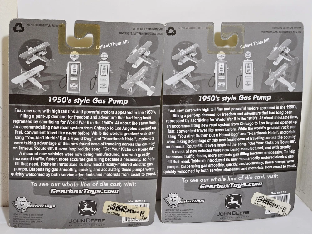New (old stock). Consists of two Gas Pump toys. Measures approximately 3-1/4" high. Items are in factory sealed packages, never opened. See photos.