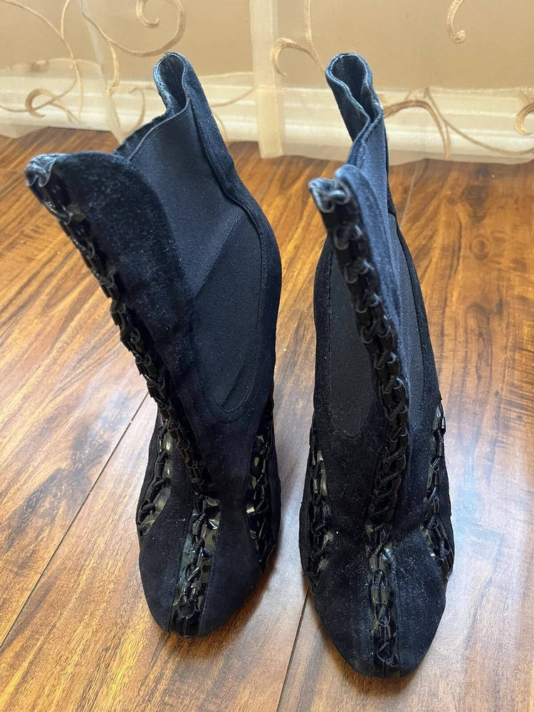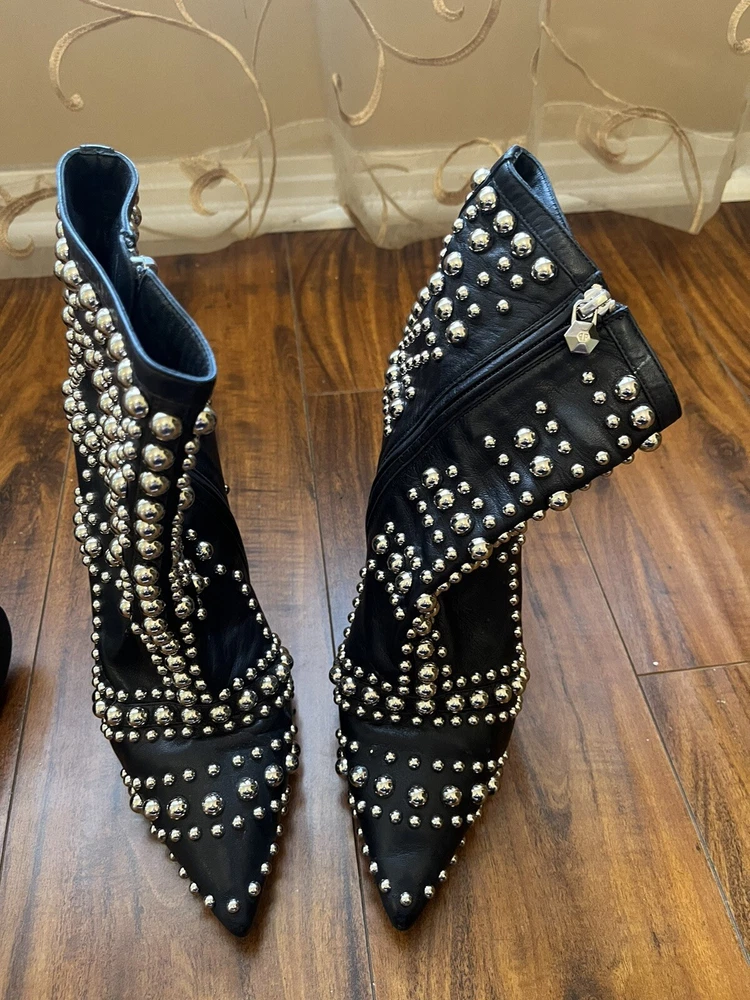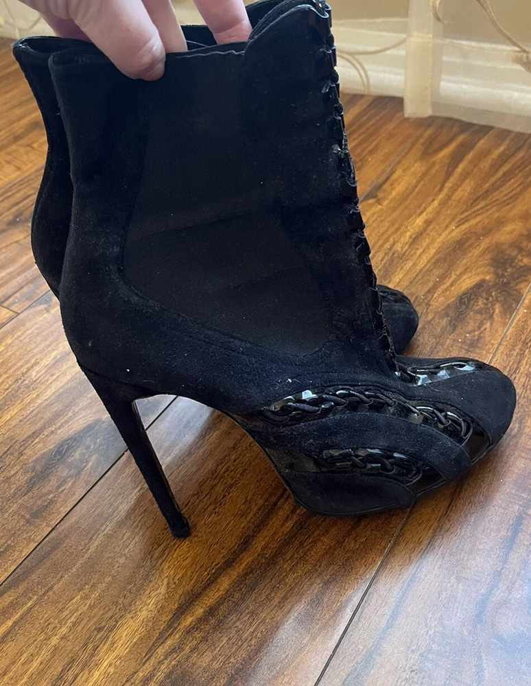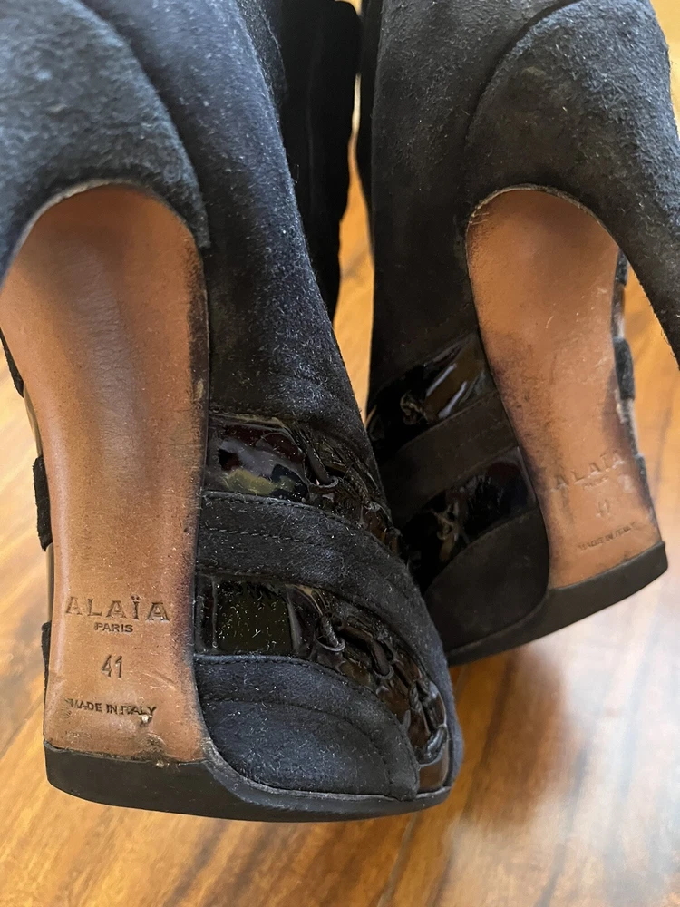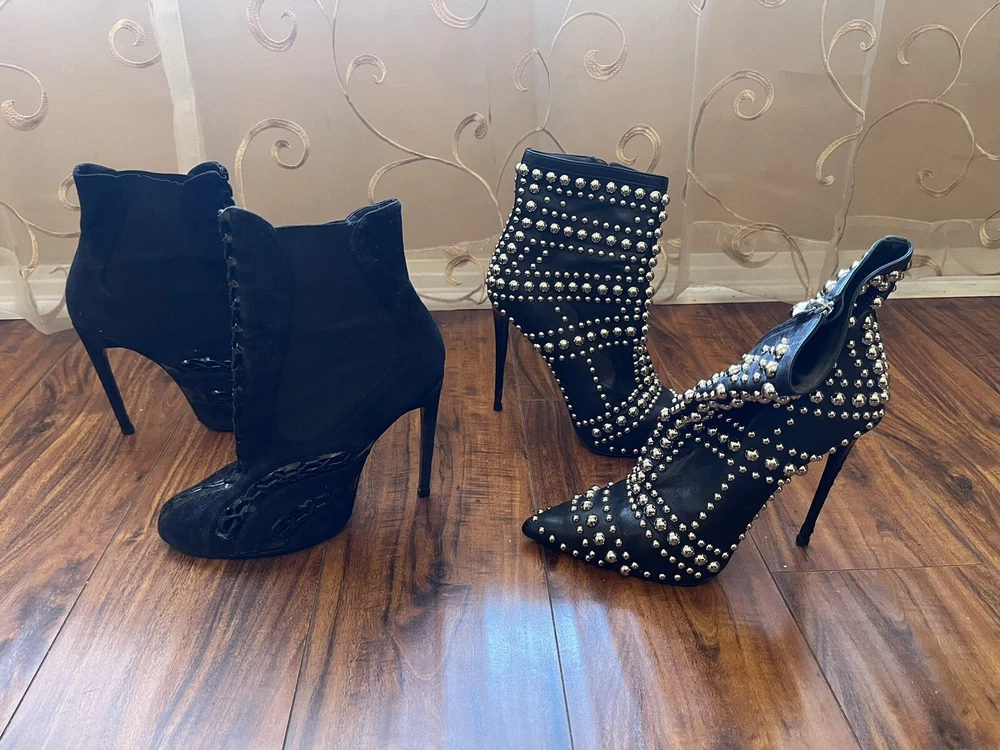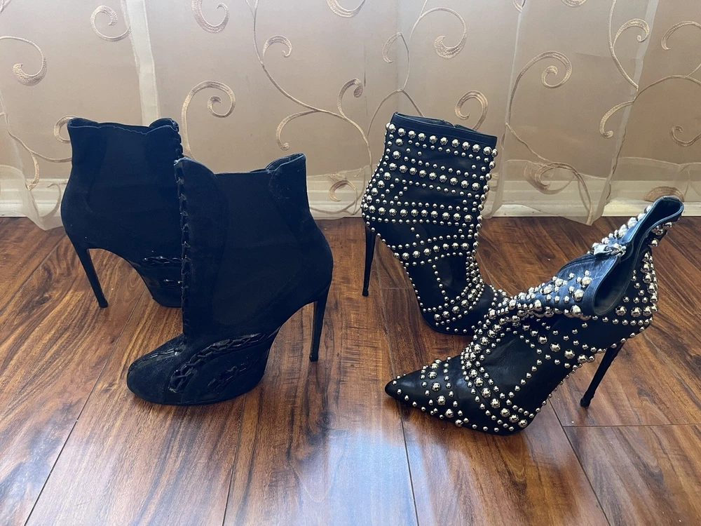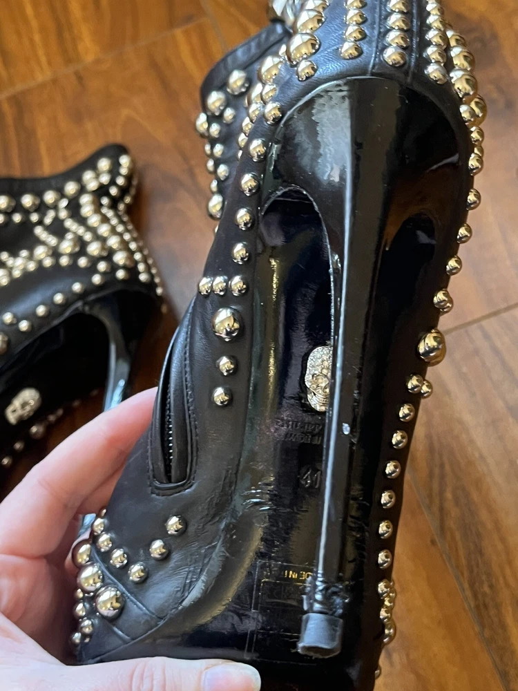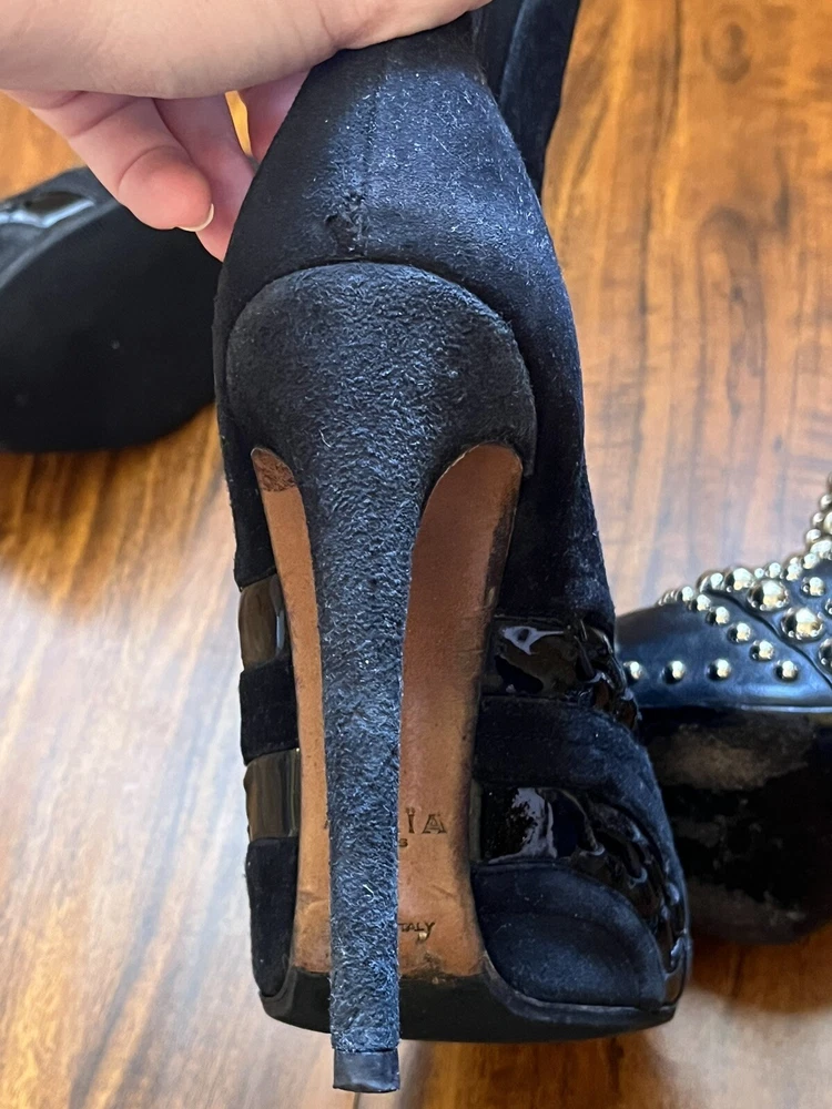 Two Pairs Of Heels (Alaia & Philipp Plein) PARIS HILTON allegedly Owned (READ!!). Hi! The story is that Paris Hilton left these shoes to be repaired at a cleaners a few years ago, but never picked them up. After some research, I was able to find photos of her wearing both shoes. They are also on the size google says she is. Of course I can’t grantee anything, but the signs are pointing to the story being true. The shoes were well loved.