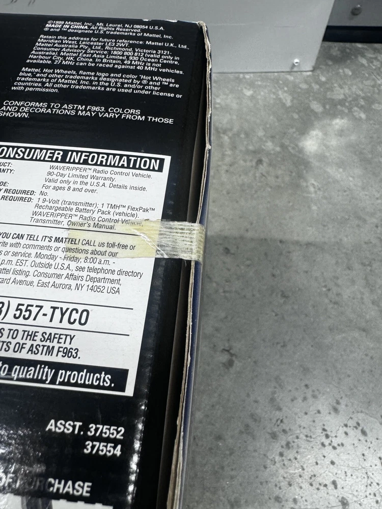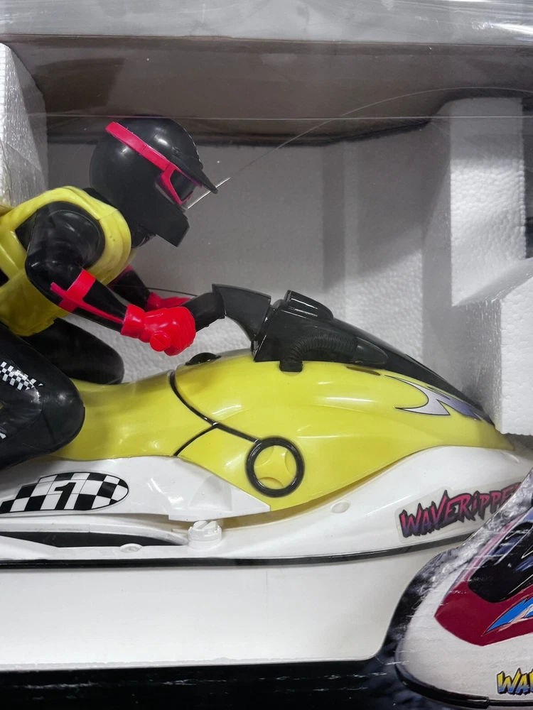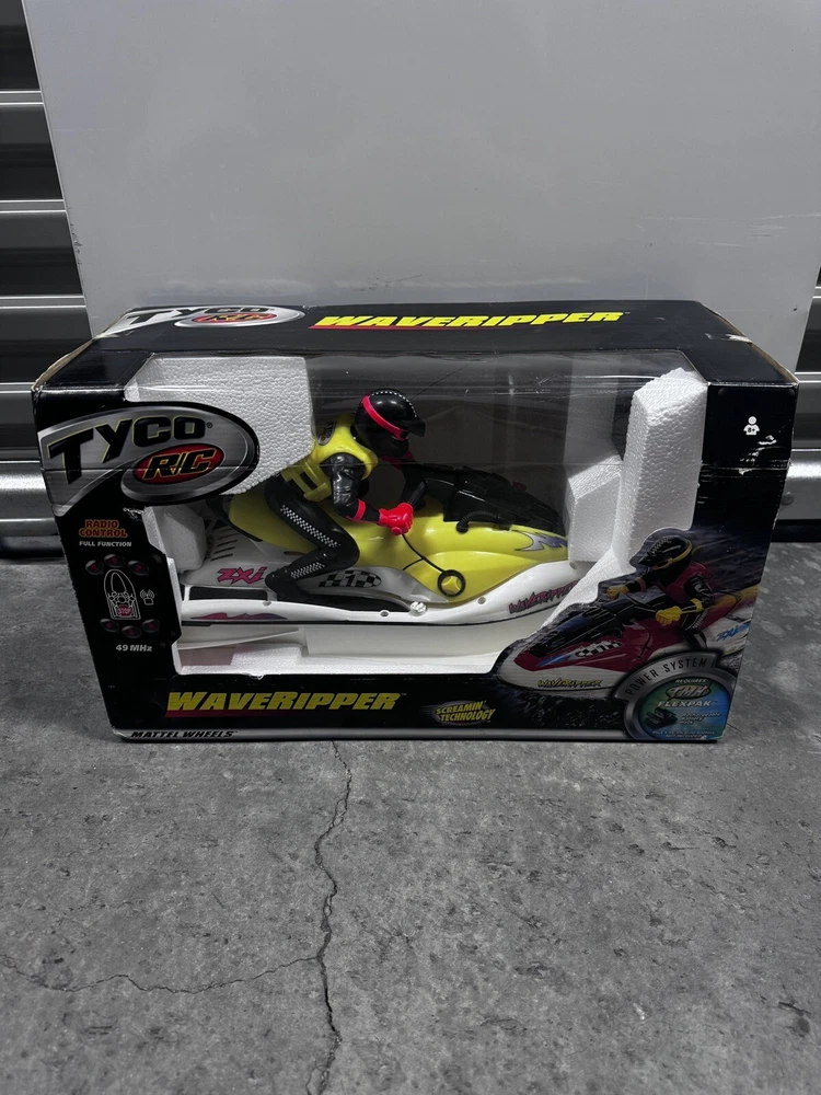 Get ready to hit the water with this Tyco R/C Wave Ripper RC Jet Ski! This radio control boat is perfect for any enthusiast looking to control their own watercraft adventures. With a brand name like Tyco, you can trust that this jet boat is made with high-quality materials and is built to last. This jet ski is a great addition to any collection of RC model vehicles and kits. Whether you're a seasoned pro or just starting out, this boat is sure to provide hours of entertainment. So, what are you waiting for? Grab your remote and hit the waves with the Tyco R/C Wave Ripper RC Jet Ski!
