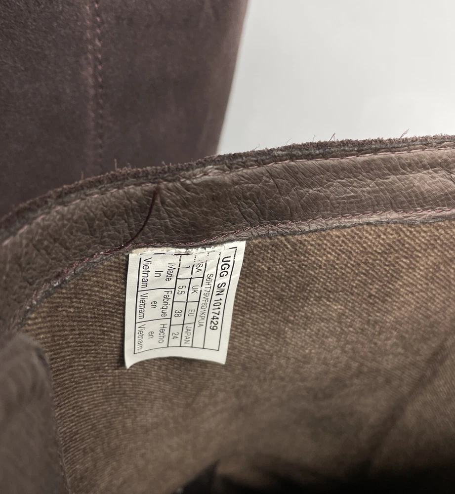 Theme: Outdoor Country/Region of Manufacture: Australia Type: Boot Shoe Width: Standard UK Shoe Size: 5.5 Toe Shape: Round Toe Color: Purple Model: 1017429 Pattern: Solid Heel Height: High (3-3.9 in) Closure: Pull On Style: Tall Boots Upper Material: Leather Brand: UGG Lining Material: Leather Department: Women US Shoe Size: 7 Accents: Logo Shoe Shaft Style: Mid-Calf Heel Style: Block