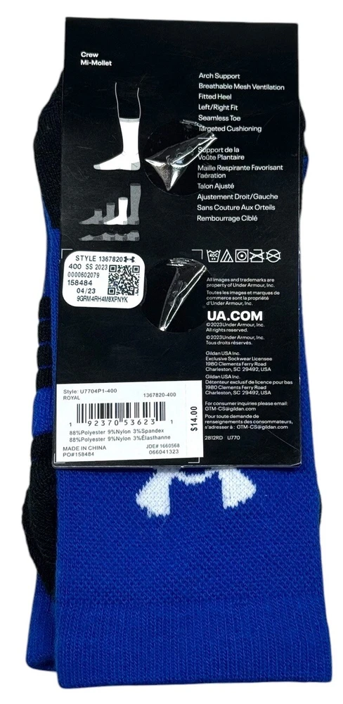 UNDER ARMOUR UA TEAM Cushioned Crew Socks Royal Blue U7704P1 Men 7-8.5 Women 6-10 NEW In Pack!!! Please See All Pictures. UNDER ARMOUR UA TEAM 1-Pair Cushioned Crew Socks MEN’S US Shoe Fit Size Available: 7-8.5 WOMEN’S US Shoe Fit Size Available : 6-10 PATTERN: Solid COLOR : Royal Blue RETAIL PRICE: $14.00 + Tax Description: 9% Nylon, 88% Polyester 3% Spandex Machine Wash Cold Imported