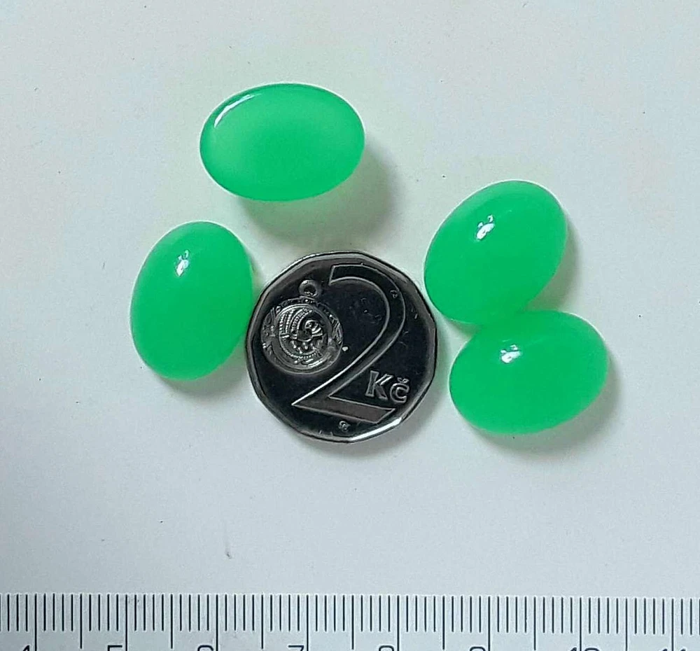 Hight Quality Oval cabochon 18*13mm, GREEN Opal URANIUM Price for 4 pcs. Uranium Glass glow under UV light (Dark Light) Be sure, this is an original product from Czech Republic!