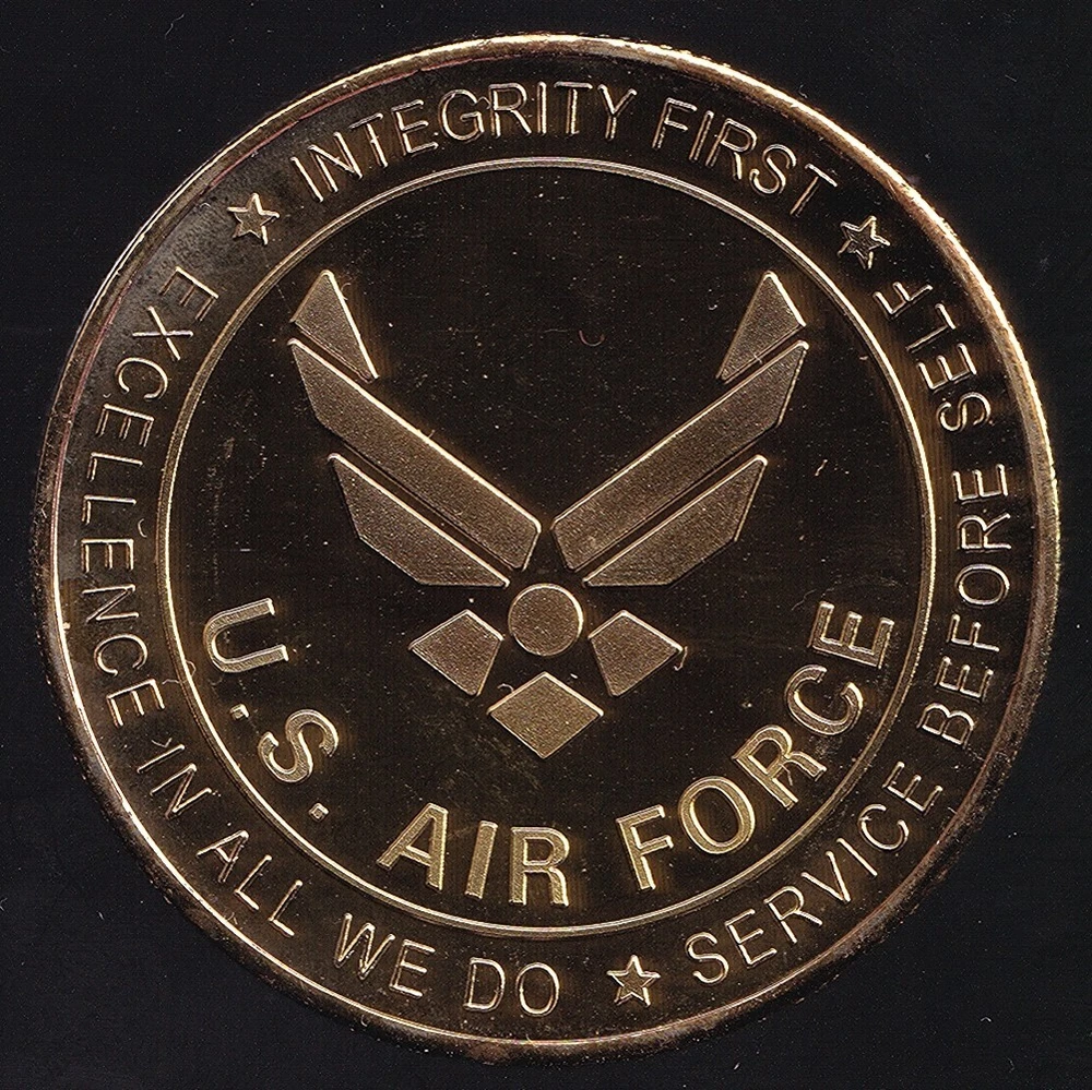 Era: 2000s Product Type: Medal Style: Modern Style Set: Challenge Coins/Medals Composition: Gold Plated Metal Theme: US Air Force Patriotism Country: Australia Region of Origin: Australia/ Oceania Technique: Casting