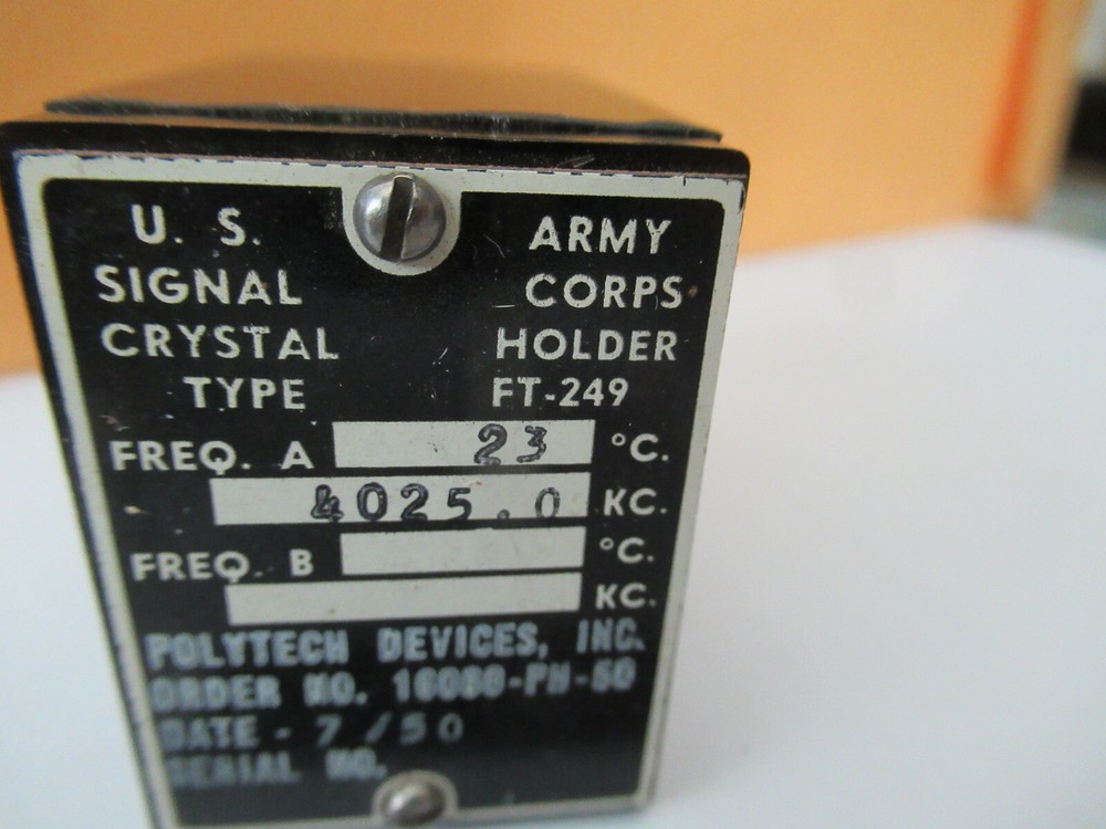 U.S. ARMY SIGNAL CORPS RESONATOR QUARTZ CRYSTAL FREQUENCY CONTROL AS PICTURED &F2-A-223 Thanks.