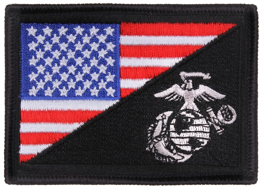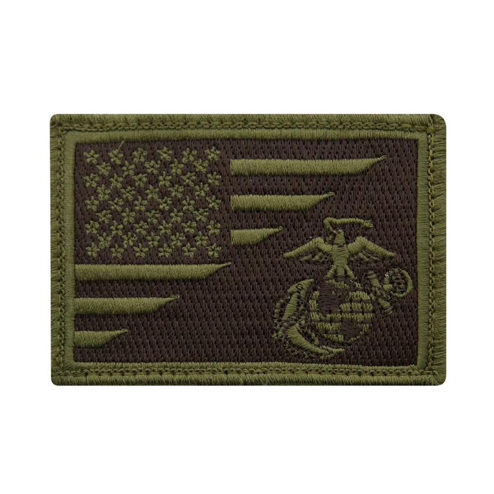 A morale patch featuring the classic United States Marine Corps logo and the American Flag. Features The Classic USMC Logo And American Flag Rayon Threading And Soft Cotton Backing Strong Nylon Hook So You Can Attach Too Loop Fielding Attaches Easily To Hat Or Jacket Tactical Patch Measures 3 3/8" X 2 3/8"