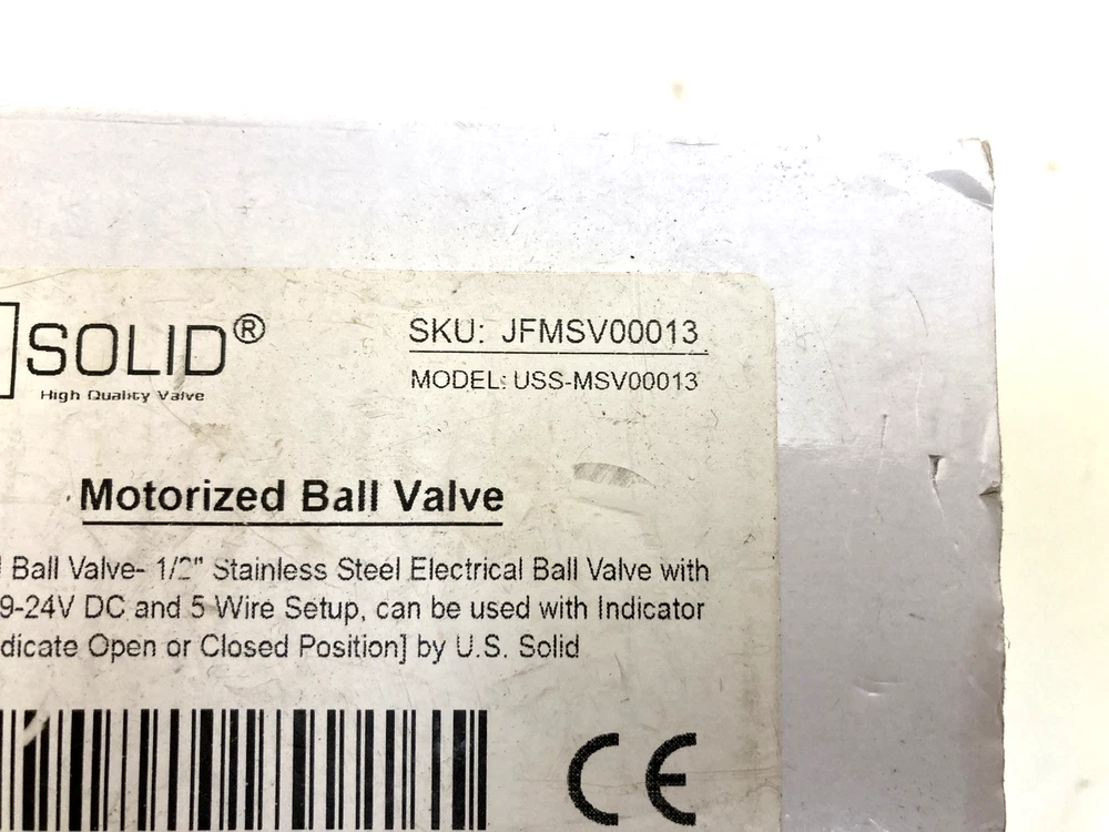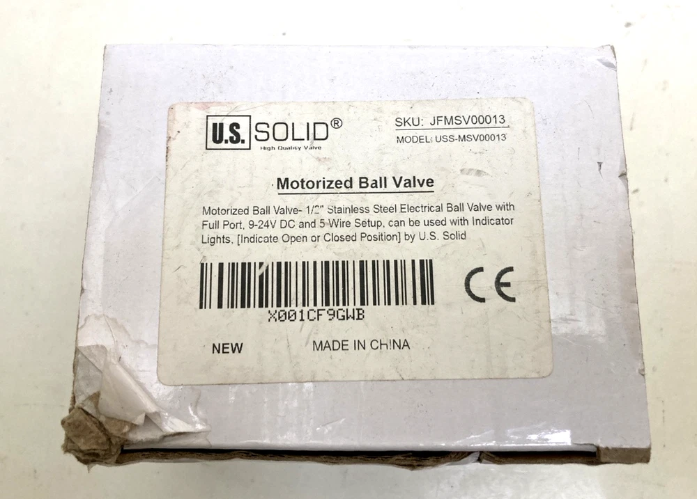 U.S. Solid 1/2" NPT Motorized Ball Valve 9/12/24V DC 5-Wire SS304 New Open Box New open box. 2 available. Both come as shown in photos so please view carefully for specifics. Ships within1 business day!