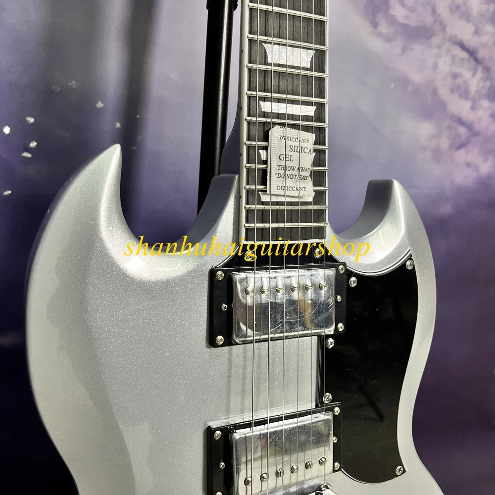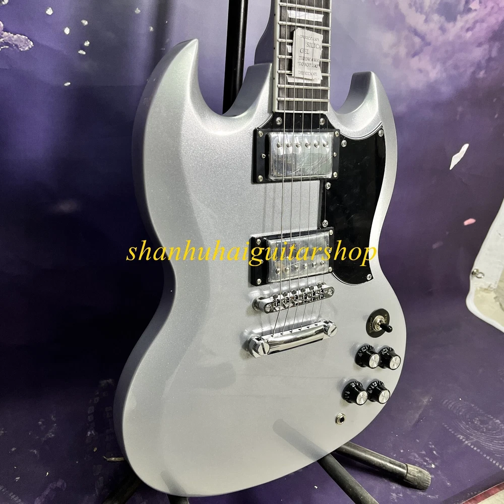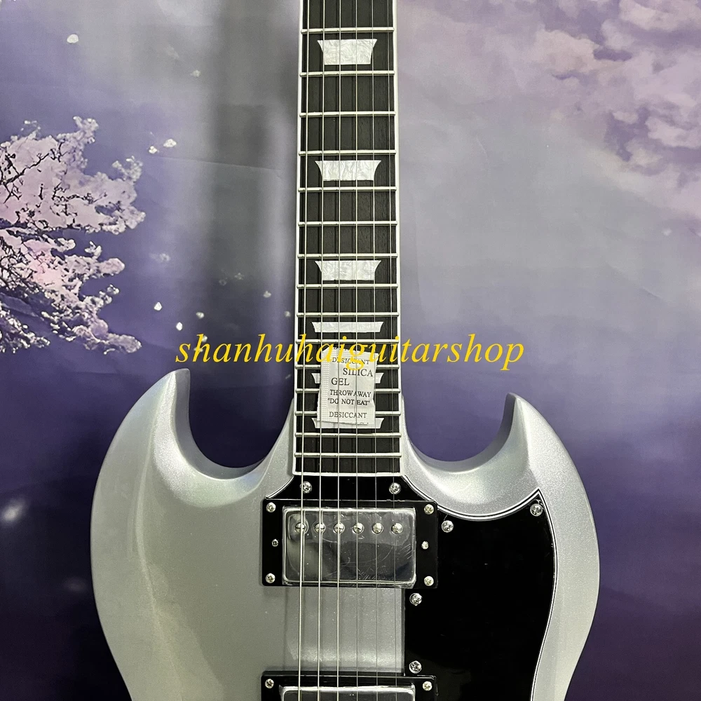 Unleash your musical creativity with the SG electric guitar, a high-quality instrument crafted for the passionate player. The guitar features a sleek silver body, paired with a rich mahogany neck and rosewood fretboard, offering a comfortable grip and smooth playability. Its 22-fret design and six-string configuration allow for a wide range of tones and styles, making it a versatile choice for both beginners and professionals. The WELL-MADE guitar is thoughtfully constructed with a solid body type, ensuring durability and resonance. It comes with a convenient cable, ready to plug in and play. Designed for the right-handed guitarist, this 2024 model blends classic design with modern craftsmanship, reflecting a commitment to excellence that's sure to please any music enthusiast.
