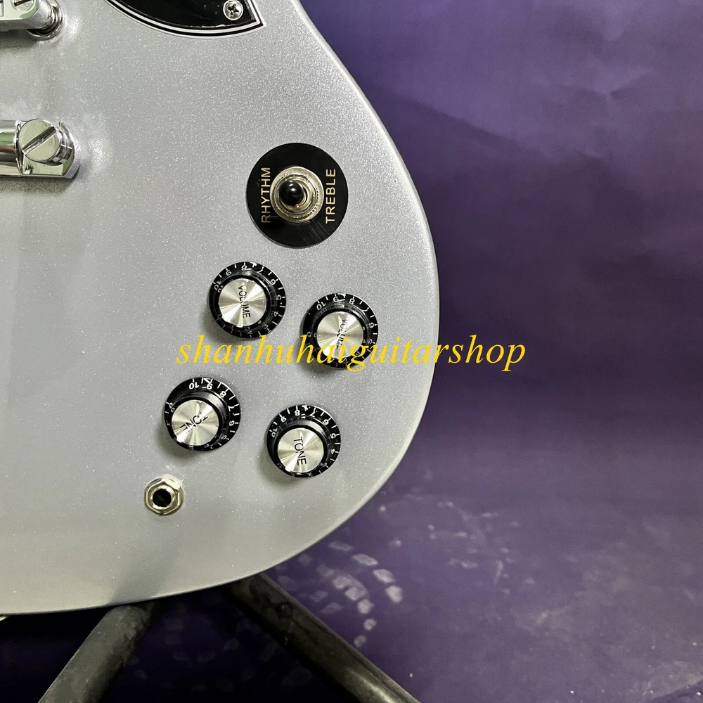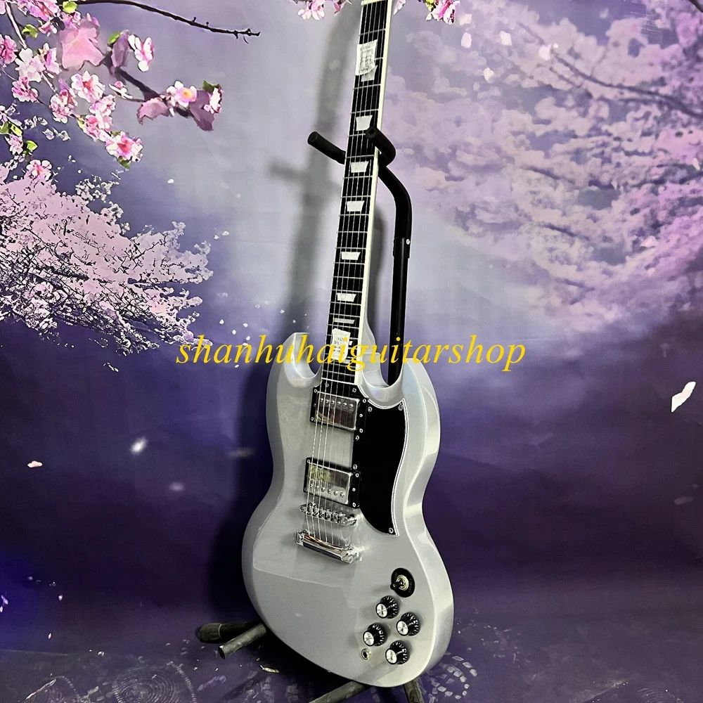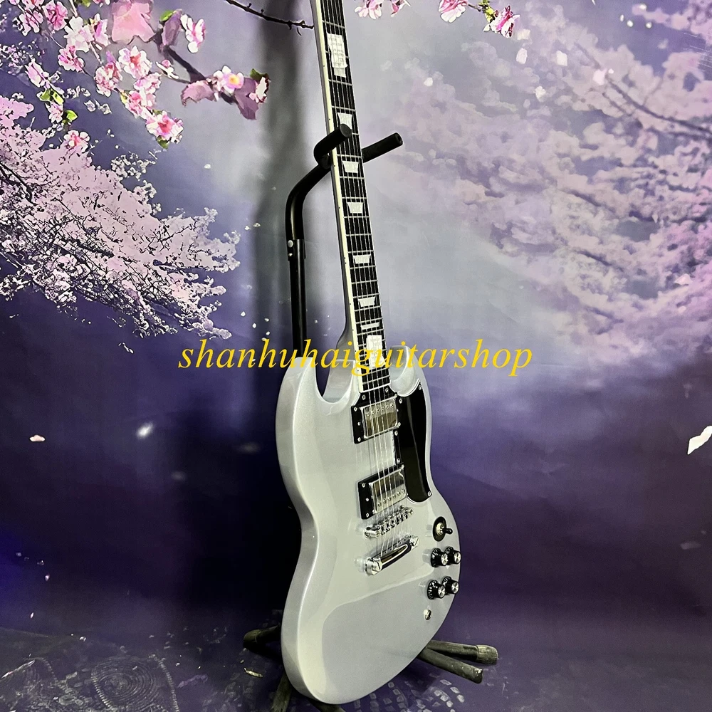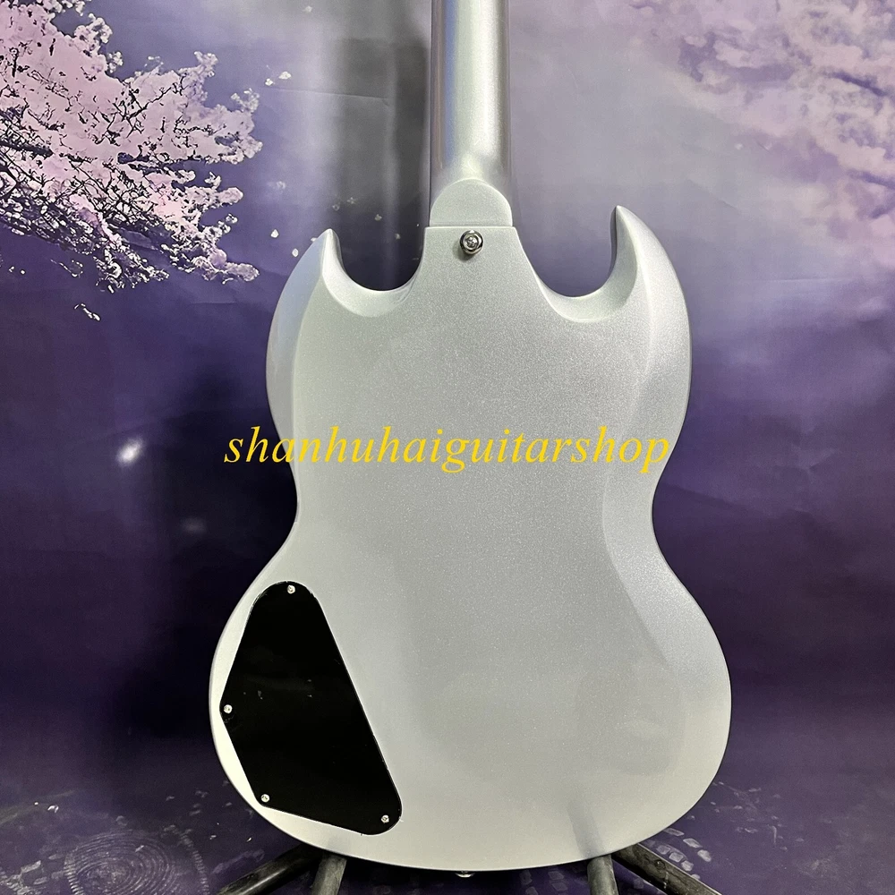 Unleash your musical creativity with the SG electric guitar, a high-quality instrument crafted for the passionate player. The guitar features a sleek silver body, paired with a rich mahogany neck and rosewood fretboard, offering a comfortable grip and smooth playability. Its 22-fret design and six-string configuration allow for a wide range of tones and styles, making it a versatile choice for both beginners and professionals. The WELL-MADE guitar is thoughtfully constructed with a solid body type, ensuring durability and resonance. It comes with a convenient cable, ready to plug in and play. Designed for the right-handed guitarist, this 2024 model blends classic design with modern craftsmanship, reflecting a commitment to excellence that's sure to please any music enthusiast.