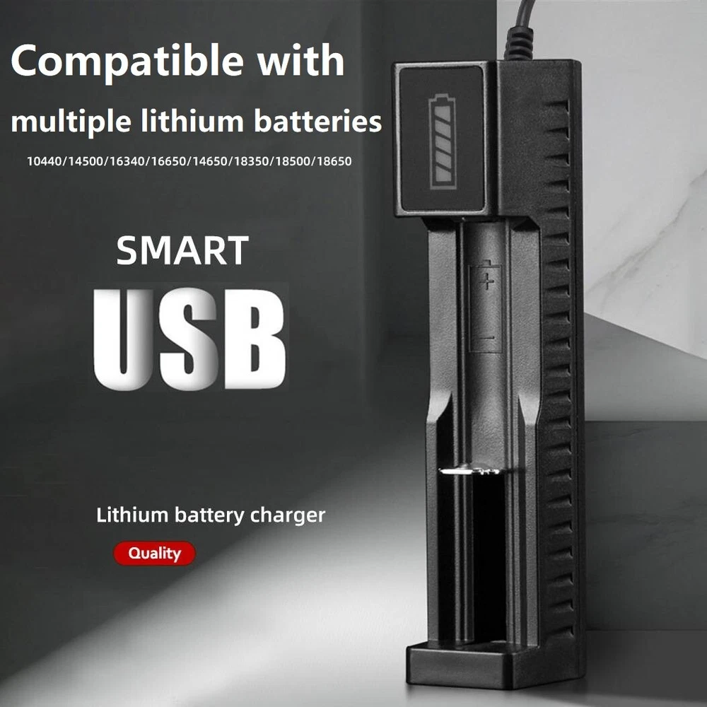 USB 1-Slot Smart Battery Charger for 16340 26650 Rechargeable Lithium Batteries Features: 1. With adjustable electrode, this single slot portable battery charger can charge many types of batteries. 2. This lithium polymer battery charger contains current and Vmax detection program to prevent your batteries from overcharging. 3. Using a usb port to charge,you can charge your batteries in the office using your computer or use a battery bank to charge while you on metro. 4. When you load the battery reverse or load a short-circuited,the battery chager won't work, keep you from possible danger. 5. Small size and light weight, the 18*65*O single slot battery charger can be put in your bag, pant pocket. 6. Intelligent IC control, output short circuit, anti-reverse protection The LED light is red when charging , it is green when full charged or empty . Specifications: Power Supply mode: USB DC5V Input Voltage: DC 5V 1-2A Output Voltage: DC 4.2V 500mA Product Size: 106*27*23mm/4.17*1.06*0.91" Compatible battery: 10440/14500/16340/16650/14650/18350/18500/18*65*O/26650 etc Package Includes: 10x Li-ion Lithium Smart Battery Charger 1-Slot On Jan 6, 2025 at 06:11:25 PST, seller added the following information: