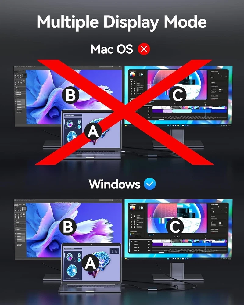 This USB C to Dual HDMI Adapter allows for seamless connection to two monitors, making it perfect for multi-tasking or sharing content with others. The adapter features a 1:2 connetion split/duplication and supports 4K@60Hz resolution, ensuring high-quality visuals for all your computing needs. The HDMI Standard Female connectors on both ends of the cable make it easy to connect to your monitors, while the 1ft cable length provides flexibility in your setup. This Splitter Cable is ideal for those who require a reliable, high-quality connection for their computers.