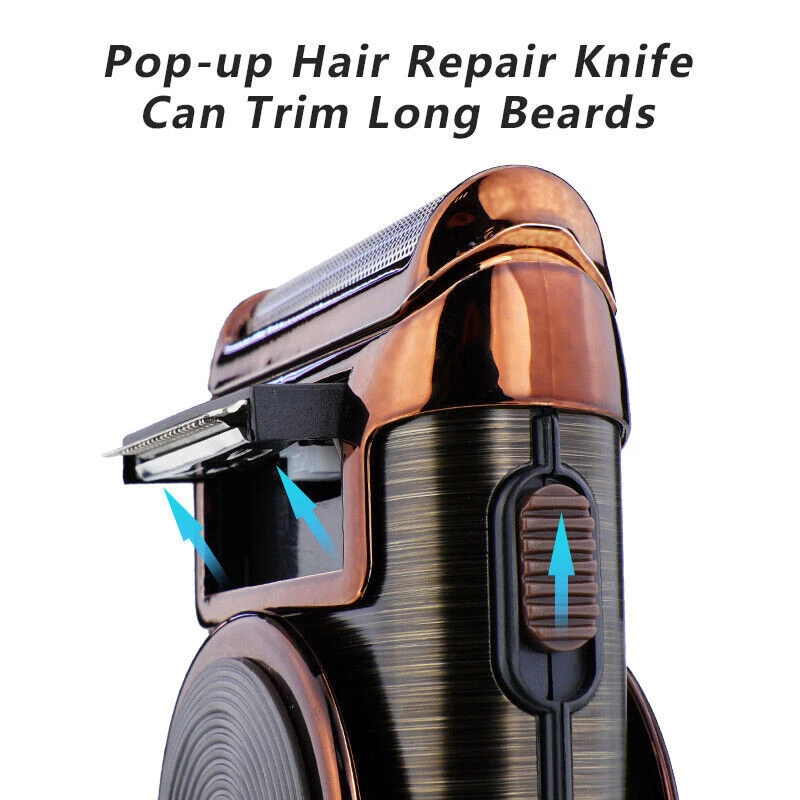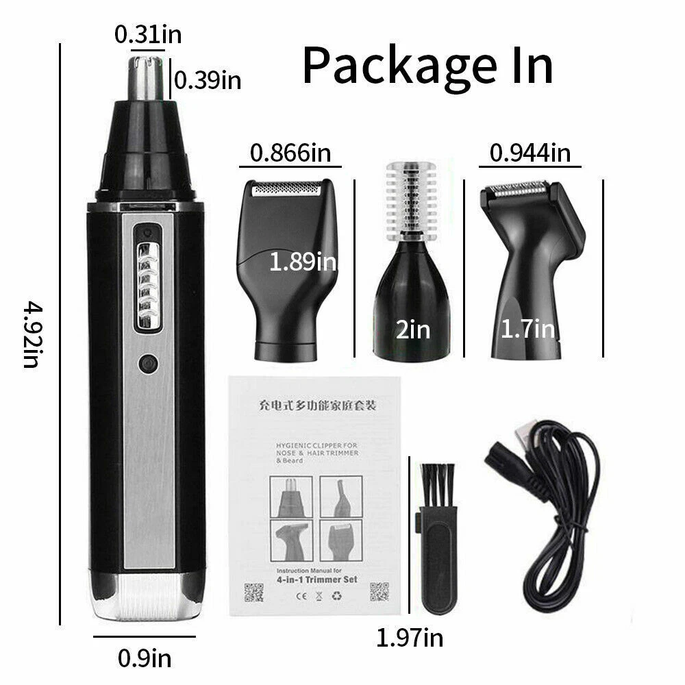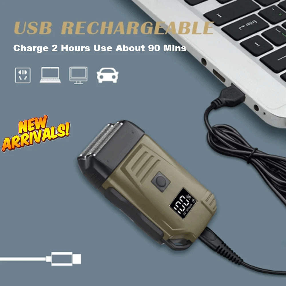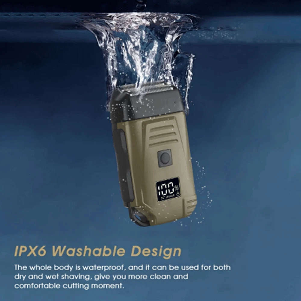 Specification Feature: Newly designed army green double-edged shaver, a machine to solve the problem of hair and beard, LCD display to check the battery at any time, IPX6 body waterproof performance, lightweight design and easy to carry. Work:Cord/cordless Type: USB Rechargeable Usage Time: 90 mins Charging Time: 2 hours Voltage: 100-240V,50/60Hz Material: ABS Weight : 250g Color : Army Green Machine Size : 4.96*2.76*1.4inch Package Size : 15.2*9.*4.5cm/6.1*3.7*1.7inch Package Included: 1* trimmer 1* Protective cover 1*charger 1* Cleaning brush 1* Manual NOTE: Due to transportation reasons, all our haircut products are not equipped with oil bottles, please understand the inconvenience