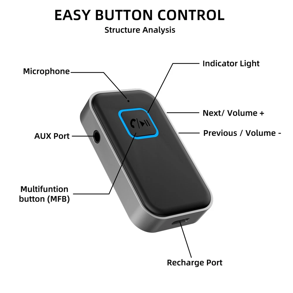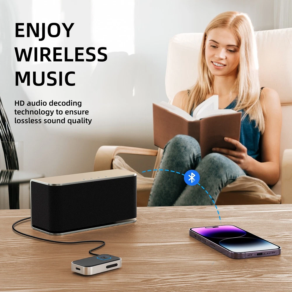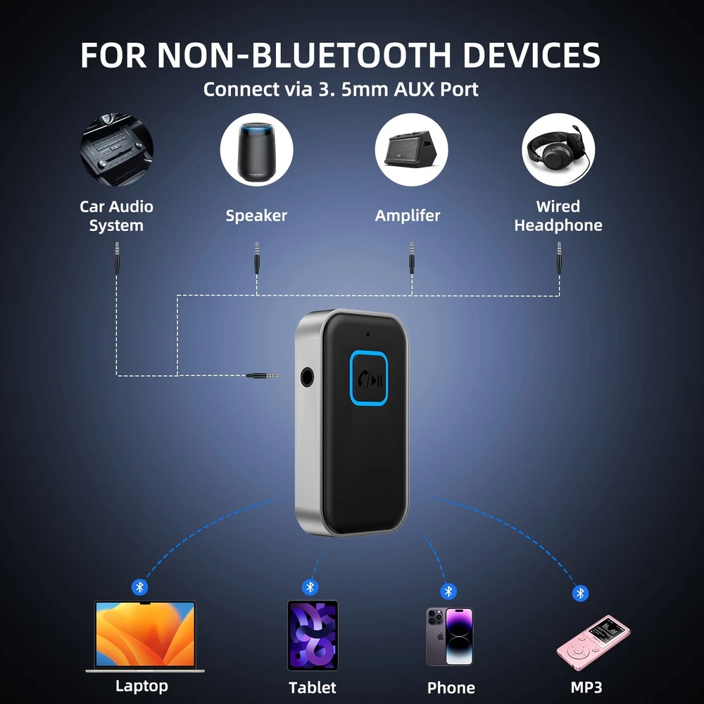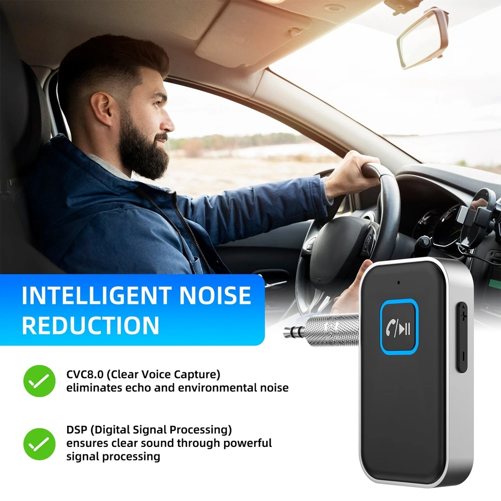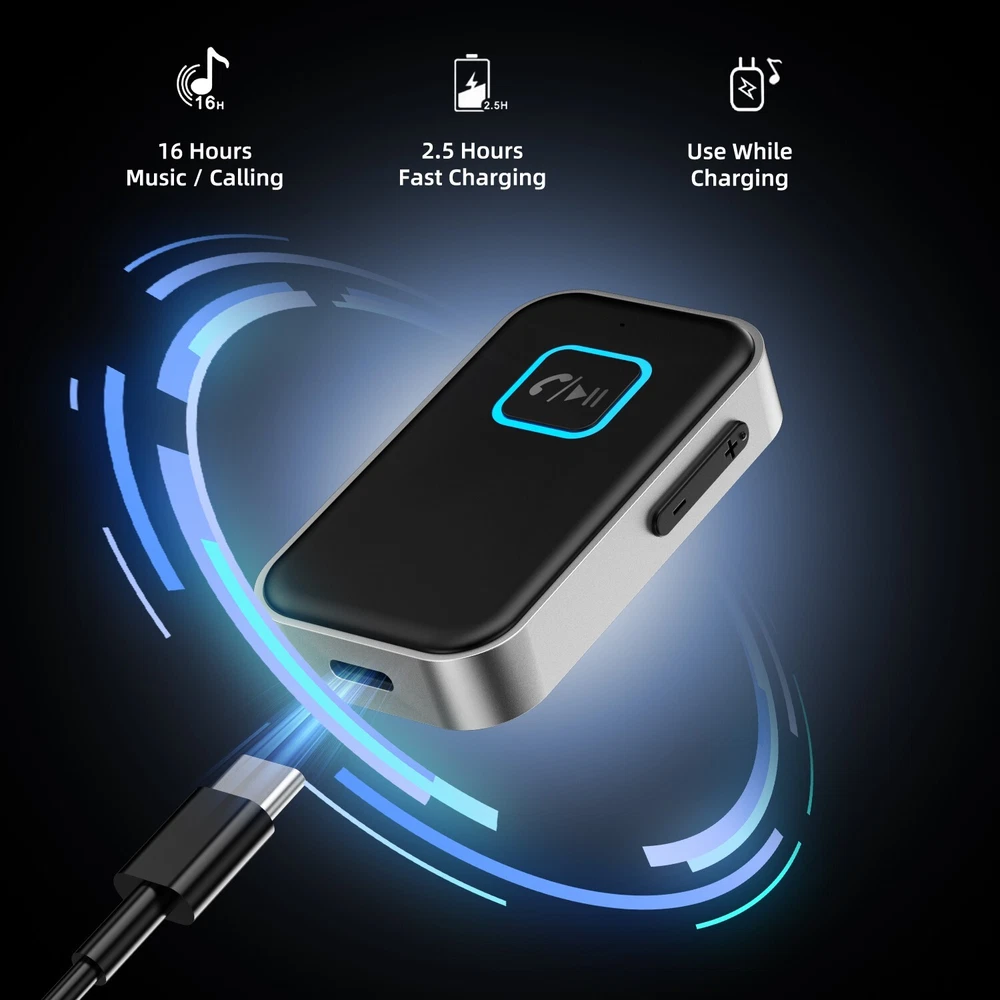 Bluetooth 5.0 USB Wireless Transmitter Receiver 2in1 Audio Adapter 3.5mm Aux Car Feature: √ 【 Intelligent Noise Reduction Tech 】Adopts the latest CVC8.0 Noise Cancellation and Digital Signal Processor (DSP) technologies, which can eliminate echo and block out intrusive background noise (such as wind, traffic, or crowds). √ 【 Low Delay 】 Low latency for high-fidelity stereo sound, content transmission without delays in transmitter mode. √ 【 2 in 1 Bluetooth Receiver/Transmitter 】 The portable adapter that can be used as a transmitter or receiver at the same time. -- [ Receiver Mode ] Bluetooth Receiver change the traditional speakers into Bluetooth-enabled speakers -- [ Transmitter Mode ] Bluetooth Transmitter is specially designed for the Audio Devices (such as MP3, MP4, TV, etc.) without Bluetooth function. √ 【 Hands-free Calling & Navigation 】A built-in microphone and one “MFB” button to answer / redial / hang up / reject calls, help you make hands-free calls. √ 【 Dual Connection 】The portable Bluetooth stereo adapter can be paired with 2 devices at the same time. √ 【 Up to 16 Hours of Battery Life 】The working time of this aux Bluetooth adapter is up to 16 hours when making calls or playing music. √ 【 Portable Size 】T he compact bluetooth adapter is small, lightweight and easy to carry. √ 【 Elbow Design 】 Does not take up space. √ 【 Plug and Play 】 No driver required, easy to use. Works with the device which has 3.5mm jacks. √ 【 Type-C P ower Supply 】 Charge it on the Micro USB port and connect it to the device via the audio adapter while using. I t takes only 2.5 hours to fully charge the device. Specification: Type: Bluetooth Receiver Transmitter Colo: Black Interface: tType-C / 3.5mm Jack Transmission Rate: 3 (Mbps) Effective Working Radius: 10 (m) / 33ft Bluetooth Standard: v5.0 Working Frequency: 200 (MHz) Working Time: 2.5 Hours (Fully Charged) Package Included: 1* Bluetooth receiver 1* 3.5mm adapter 1* Type-C charging cable 1* Manual On Jun 16, 2024 at 20:24:53 PDT, seller added the following information: