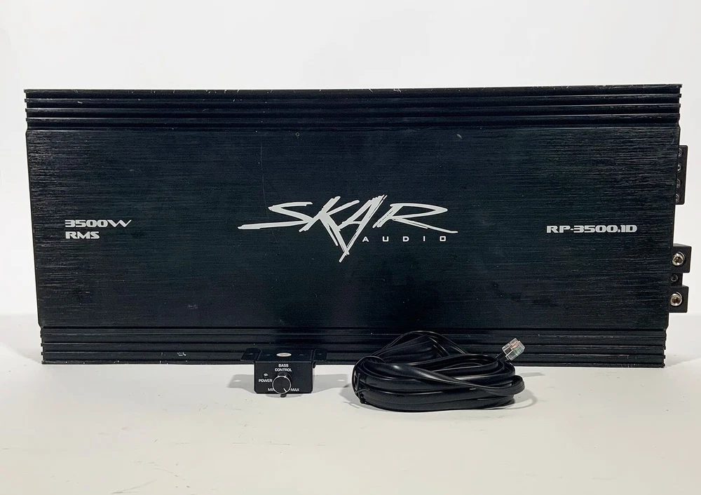 Welcome to Our eBay Store Amplifiers SK-M-Series RP-Series SKv2 Series RP-Marine Series Subwoofers IX Series VD Series SDR Series SVR Series DDX Series EVL Series VXF Series ZVXv2 Series Empty Subwoofer Boxes Speakers RPX Series TX Series FSX Series SPX Series Tweeters Loaded Enclosures SDR Series SVR Series EVL Series Loaded Tube Enclosures Empty Enclosures 8" Enclosures 10" Enclosures 12" Enclosures 15" Enclosures 18" Enclosures Vehicle Specific More Complete Bundles Car Audio Marine Audio Amplifier Wiring Other Amplifiers Subwoofers Speakers Loaded Enclosures Empty Enclosures Complete Bundles Amp Kits, Wiring & More USED SKAR AUDIO RP-3500.1D 5500 WATT MAX POWER CLASS D MONO SUB AMPLIFIER Skar Audio is offering a limited quantity of certified USED RP-3500.1D Class D Monoblock subwoofers amplifiers. These are part of the extremely popular RP series amplifiers made by Skar Audio, and the certified used offering of this model is a great way to take advantage of huge savings on such a product. All certified used amplifiers are expected to have cosmetic flaws such as scratches, bent mounting posts, or other signs of use, but are fully tested to be working perfectly and come with a 1 year limited warranty from Skar Audio. These are repackaged and shipped safely upon purchase. The certified used RP-3500.1D will come with it's normal remote subwoofer level control bass knob with wiring allowing the user full control over their bass from the front of the vehicle. This makes for a great amplifier when looking for serious power to get your system loud, and will work great on a single subwoofer around 3,500 watts RMS. Specifications Condition: Used (Will Show Signs of Use/Cosmetic Blemishes) Tested and certified to be in perfect working condition Skar Audio RP-3500.1D Monoblock Car Subwoofer Amplifier 1 Ohm Stable Class D Monoblock Subwoofer Amplifier 4 Way Protection Circuitry: Thermal, Voltage, Speaker, DC RMS Power @ 4 Ohms: 1,200 Watts x 1 Channel (14.4v) RMS Power @ 2 Ohms: 2,300 Watts x 1 Channel (14.4v) RMS Power @ 1 Ohm: 3,500 Watts x 1 Channel (14.4v) RMS Strapped Power @ 2 Ohms: 7,000 Watts x 1 Channel (14.4v) MOSFET Power Supply Soft Turn on Circuit Frequency Response: 20Hz~250Hz Signal to Noise Ratio: 85dB Damping Factor: 200< Low Pass Filter (Variable): 35Hz~250hz Subsonic Filter: 10Hz~50Hz Bass EQ: 0dB~9dB Remote Bass Knob & Wire Included 1/0 Gauge Power and Ground Terminals Working Voltage: 8.5V-14.4V Fuse Rating: 350 Amp Strapped Fuse Rating: 700 Amp Dimensions: 18.9" (Length) x 8.27" (Width) x 2.44" (Height) About Us Shipping Returns Contact Us Skar Audio was founded with the principle of designing and manufacturing the highest quality car audio products backed by world class customer support. We believe that our customers define who we are as a company, which is why we believe so strongly in putting them first. To fulfill that promise, Skar Audio operates primarily from its state of the art, 100,000 sq. ft. world headquarters, located in St. Petersburg, Florida. However, we also have additional distribution facilities spread across the country to ensure we continue to elevate ourselves as a brand that delivers a truly world class shopping experience. Our team is composed of incredibly hard working and dedicated individuals who are audiophiles themselves. Our team along with our incredible supporters (you!) are the reason Skar Audio has been ranked amongst Inc. 5000’s fastest growing companies in America for 2019, as well as NewsWeek’s best online shops of 2020. Who does Skar Audio use to ship my purchase? Due to varying rates and shipping times, Skar Audio uses a variety of shipping carriers including USPS, UPS, and FedEx. While most normalizedItems will be sent via UPS, it is not uncommon to receive normalizedItems via another carrier when it makes sense as the best option to care for our customers purchases. Do I qualify for free shipping? Skar Audio is happy to offer retail customers who order directly from Skar Audio's official website free shipping to the continental United States for orders over $50. Currently, customers residing in Hawaii and Alaska do not qualify for free shipping. International shipments will be subject to shipping costs that are calculated at the time of purchase, and will be subject to any fees or duties charged by the carrier additionally. Please be aware that these duties and fees are not calculated into the shipping cost at the time of checkout. Does Skar Audio ship internationally? Due to factors beyond our control, we have suspended all international shipping on orders made directly via Skar Audio's official website effective 9/20/2020. Our internal team is working diligently to restore this service and create a better experience for our customers who do not reside domestically within the United States. We do not currently have an estimated time that this service will be available to our friends outside of the United States, however, we will be happy to announce once we are able to re-establish this service for our customers outside the United States. Additional shipping options may be available via other authorized retailers like Amazon or eBay if purchasing from their platform. Please contact these retailers directly to confirm their policies and options that they might have available to you. How long will it take to get my order? Skar Audio has strategically expanded operations within the US, and can reach most of the United States in 3 business days. We make an effort to ship out orders the same day if the orders are made during business hours. Any orders placed over the weekend or after business hours will ship out the following business day. Does Skar Audio offer expedited shipping? Skar Audio does offer expedited shipping options at an additional cost. The options available vary based upon area and can be viewed during the checkout process. If I purchase an item on backorder, when should I expect to receive it? Skar Audio is constantly