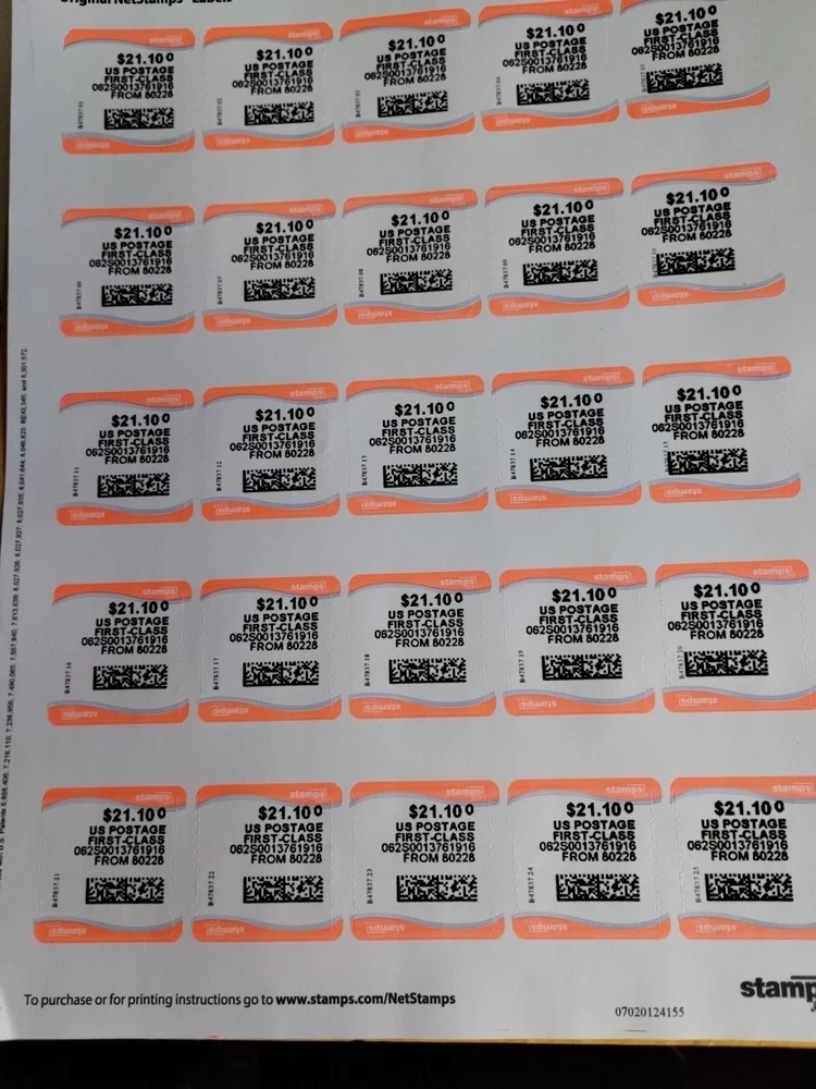 This limited-time sale offers USPS $21.10 postage stamps that are perfect for anyone who needs to send a package. With a face value of $21.10 per stamp with a total value of $527.50 (25 stamps per sheet) these stamps are a great deal. The stamps are certified by USPS and are of high quality, ensuring that they will last a long time and they NEVER EXPIRE. The stamps are from the United States and are perfect for anyone who wants to send mail or packages at an amazing discount! This is my Grand Re-opening Sale, where you can pay only 25% of the face value. This is a great opportunity to get your hands on these stamps, and DON'T FORGET FREE PRIORITY EXPRESS MAIL SHIPPING!