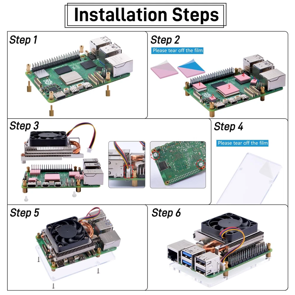 Horizontal Tower Design --- The horizontal layout of the cooler enhances heat dissipation by increasing the contact area with the ambient air, leading to more effective cooling. Ultra-Thin Fins --- The fin array is designed to be ultra-thin, which maximizes the heat dissipation area and improves the overall thermal performance. 4Pin JST Interface --- The cooler uses a 4Pin JST connector that is compatible with the Raspberry Pi's built-in fan control system, allowing for seamless integration and automatic speed regulation. Automatic Temperature Control --- The cooler is designed to automatically adjust the fan speed in response to the CPU temperature, ensuring that the device operates within safe thermal limits. Enhanced Cooling Efficiency --- The combination of the ultra-thin fin design and the automatic fan speed control mechanism results in superior cooling performance, keeping the Raspberry Pi 5 cool even under heavy workloads. Quiet Operation --- With intelligent fan speed control, the cooler operates quietly, minimizing noise disturbance while maintaining high cooling efficiency.