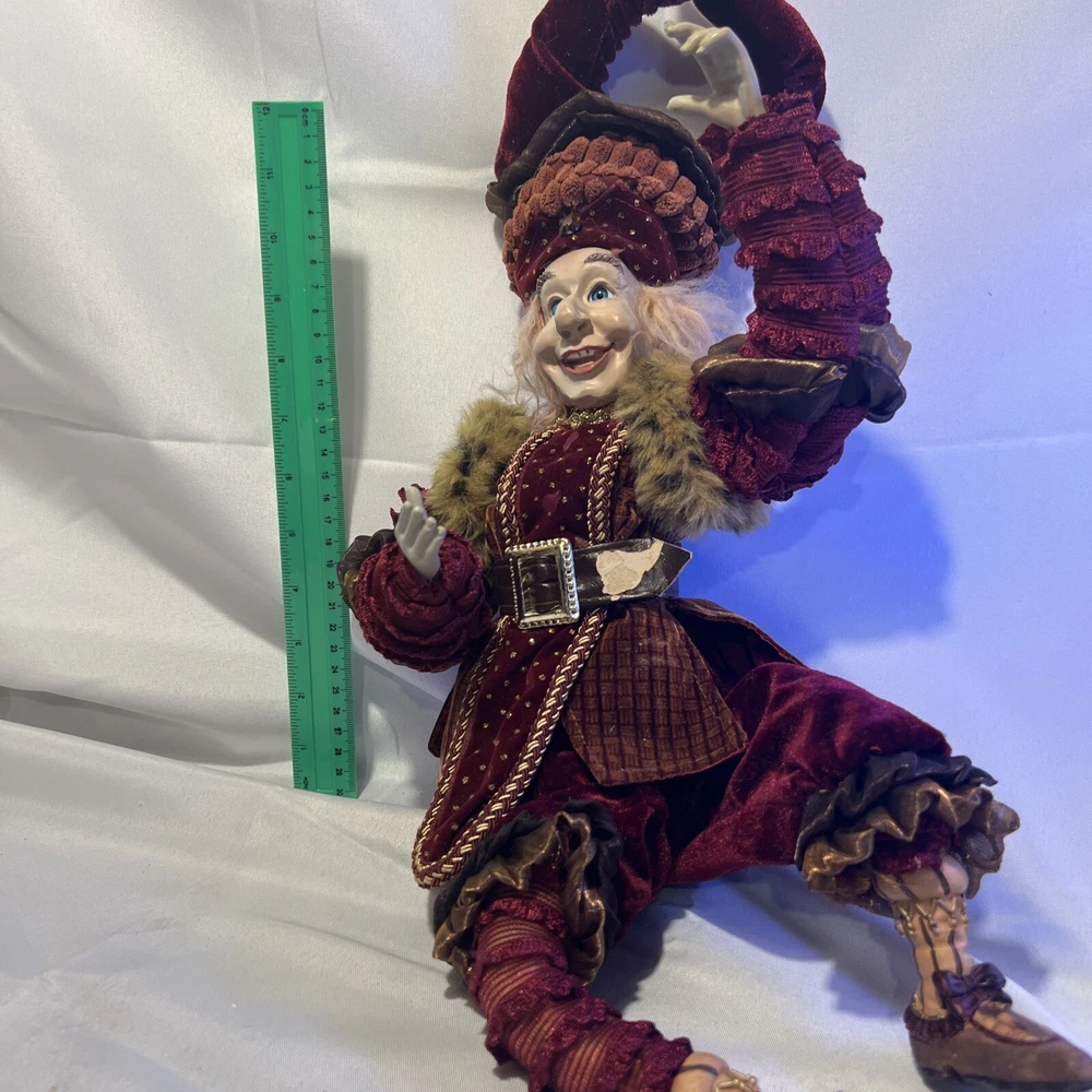 ***One noticeable flaw, damage to his leather belt*** Add a touch of Mardi Gras magic to your costume party with this large, unbranded jester mask. The fine details and 3D hand-painted features make this venetian mask a perfect fit for a masquerade party, prom ball, Halloween carnival, or wedding dance. The black paper mache material and one-size-fits-all design make it suitable for adult unisex wearers. This venetian mask is not only a great addition to your costume party decorative art collection, but also a perfect gift for your creative costume party wall decorative art. Whether you're looking for a funny Halloween mask costume or a vintage venetian masquerade mask, this Italian full-face prop mask is sure to impress. So, add a touch of elegance and mystery to your party with this unique and hard-to-find mask.
