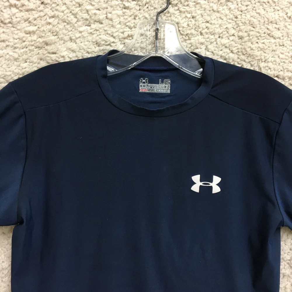 Under Armour Shirt Large Adult Blue Compression Heatgear Stretch Athletic Mens L