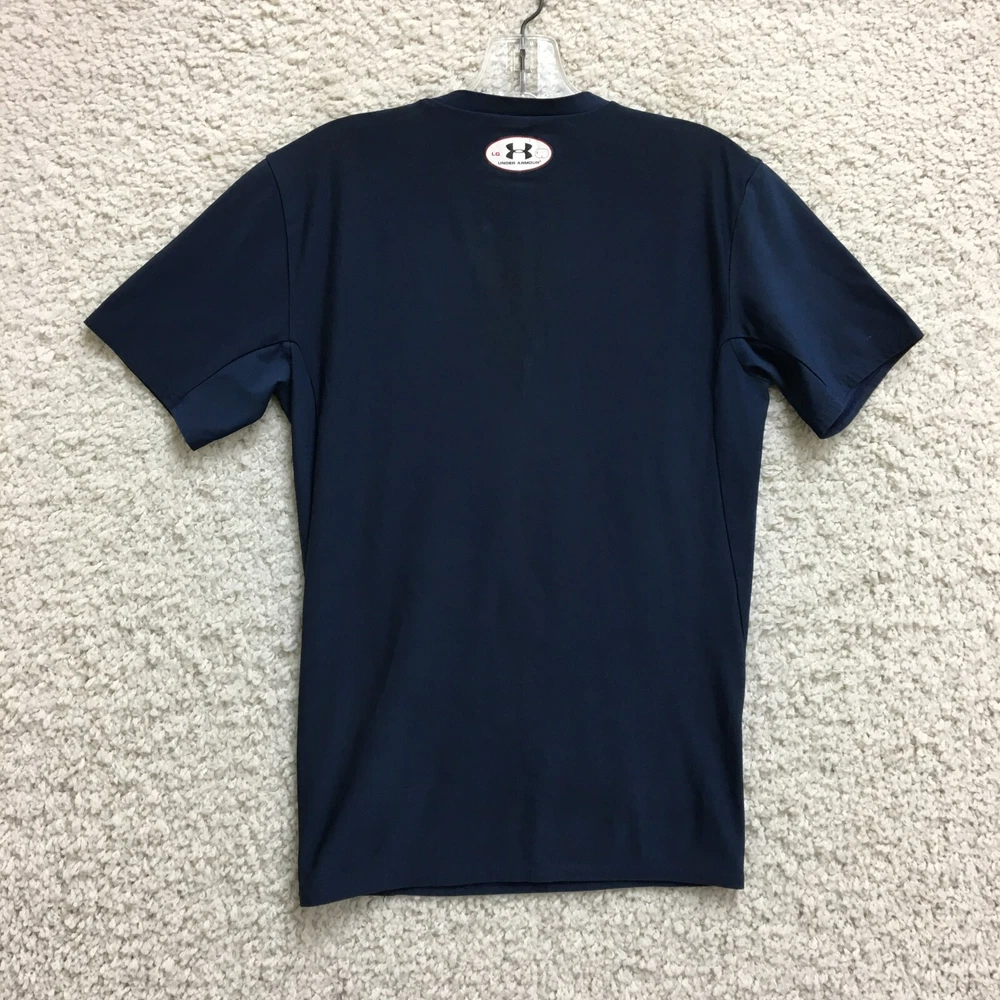 Material: Polyester, Polyester Blend, Spandex Color: Blue Fabric Type: Blended Fabric Closure: Pullover Accents: Logo Pattern: Solid Sleeve Type: Casual Sleeve Product Line: Under Armour HeatGear Country/Region of Manufacture: El Salvador Brand: Under armour Occasion: Activewear, Casual Fit: Athletic Season: Fall, Spring, Summer, Winter Sleeve Length: Short Sleeve Theme: Classic, Modern, Sports Size Type: Regular Type: T-Shirt Size: L Style: Basic Garment Care: Machine Washable Neckline: Crew Neck Performance/Activity: CrossFit, Cross Training, Gym & Training Department: Men Features: All Seasons, Easy Care, Lightweight, Stretch Fabric Wash: Medium