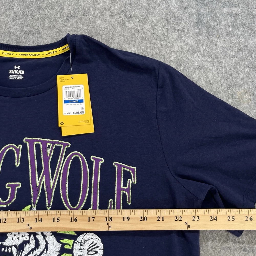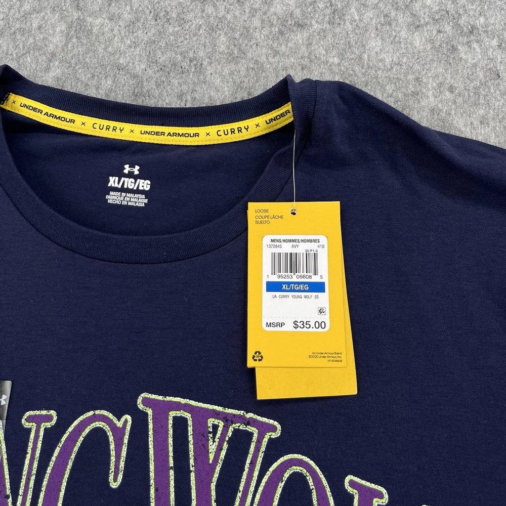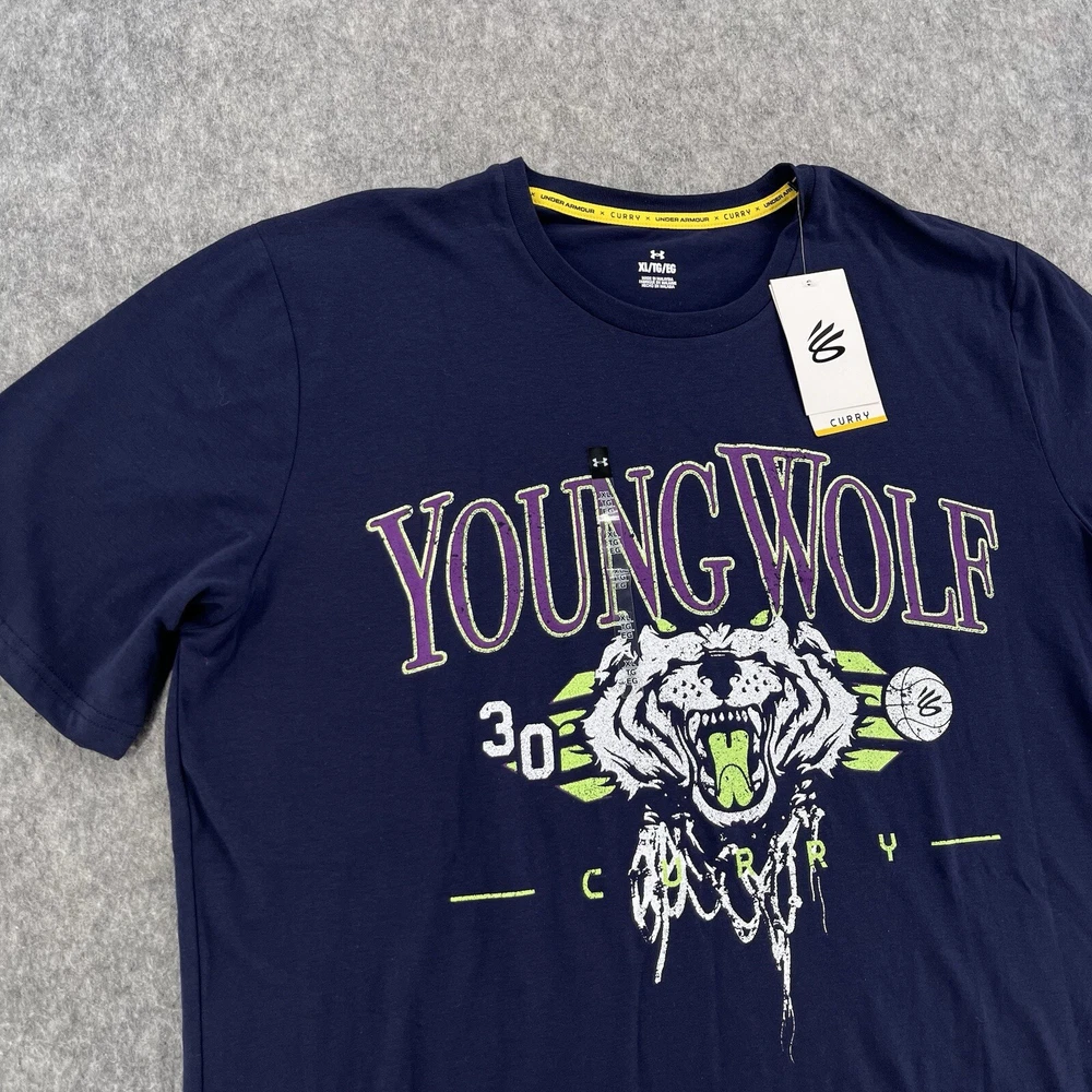 Under Armour UA Mens Blue Steph Curry Basketball Young Wolf T Shirt Size XL NEW