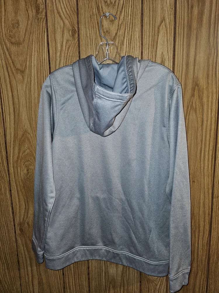 This Under Armour hoodie is a must-have for any activewear collection. Show your support for the United States Navy with the bold graphic logo on the chest. The hoodie is made of high-quality materials to ensure maximum comfort and durability. The gray color is versatile and perfect for any outfit, while the accents of the logo add a unique touch. This hoodie is perfect for women who enjoy an active lifestyle and want to stay comfortable while showing their pride in the Navy.