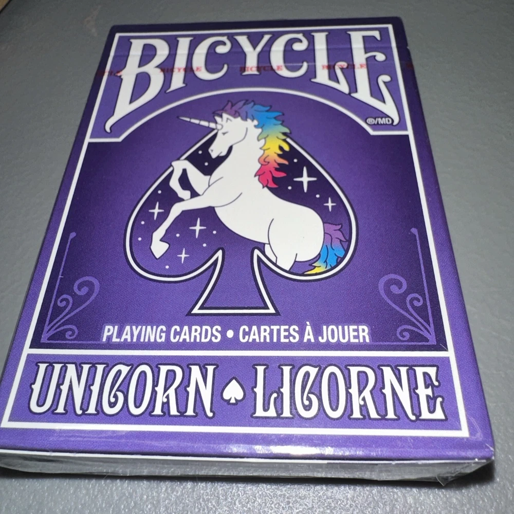 Get ready to add a touch of whimsy to your next poker game with these custom limited edition Unicorn Bicycle Playing Cards! Crafted by USPCC, these cards feature a charming unicorn theme and are perfect for collectors or game night enthusiasts. With a modern design and high-quality construction, these poker-sized cards are sure to impress. Plus, they make a great gift for anyone who loves unicorns or playing cards. Add some magic to your next game with these one-of-a-kind playing cards!