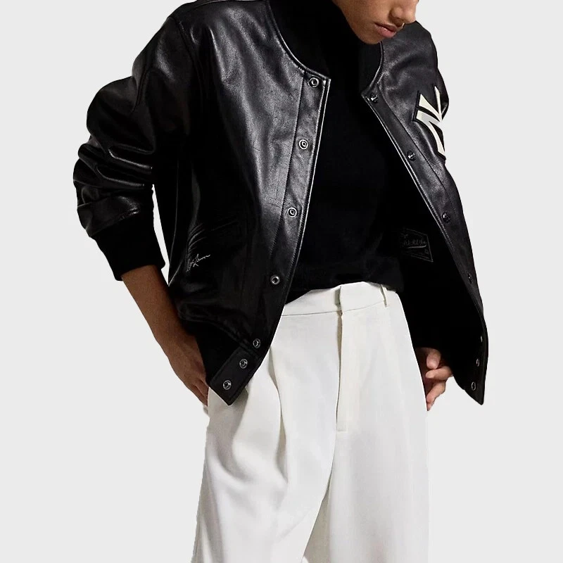 Unisex Premium Black Polo Ralph Lauren Yankees Genuine Leather Bomber Jacket Description: Elevate your style with the Unisex Premium Black Polo Ralph Lauren Yankees Genuine Leather Bomber Jacket. Crafted from high-quality genuine leather, this sleek bomber features a classic black design with signature Polo Ralph Lauren detailing and a bold Yankees logo for a sports-inspired look. Designed for both comfort and durability, it’s perfect for casual wear or a statement piece for any occasion. Specifications: Material : 100% Genuine Leather Color : Black Style : Bomber Jacket Fit : Unisex Brand : Polo Ralph Lauren Logo : Embroidered Yankees logo on chest Collar : Ribbed, stand-up collar Cuffs : Ribbed cuffs and hem Pockets : Side pockets with zippers Closure : Front Button closure Care : Dry clean only Why Choose AHMII Leathers? AHMII Leathers offers unmatched craftsmanship, using premium materials for luxury leather goods. Their attention to detail, commitment to quality, and timeless designs ensure each piece is durable, stylish, and built to last. Whether for fashion or function, AHMII Leathers delivers sophisticated, high-end leather products you can rely on.