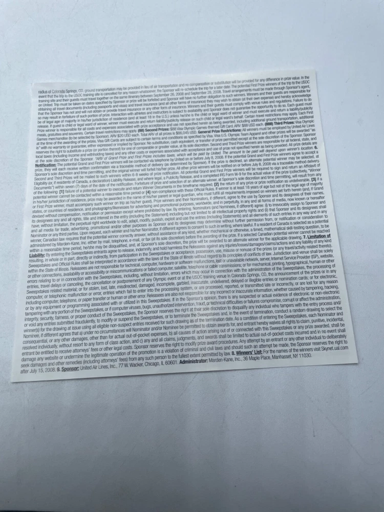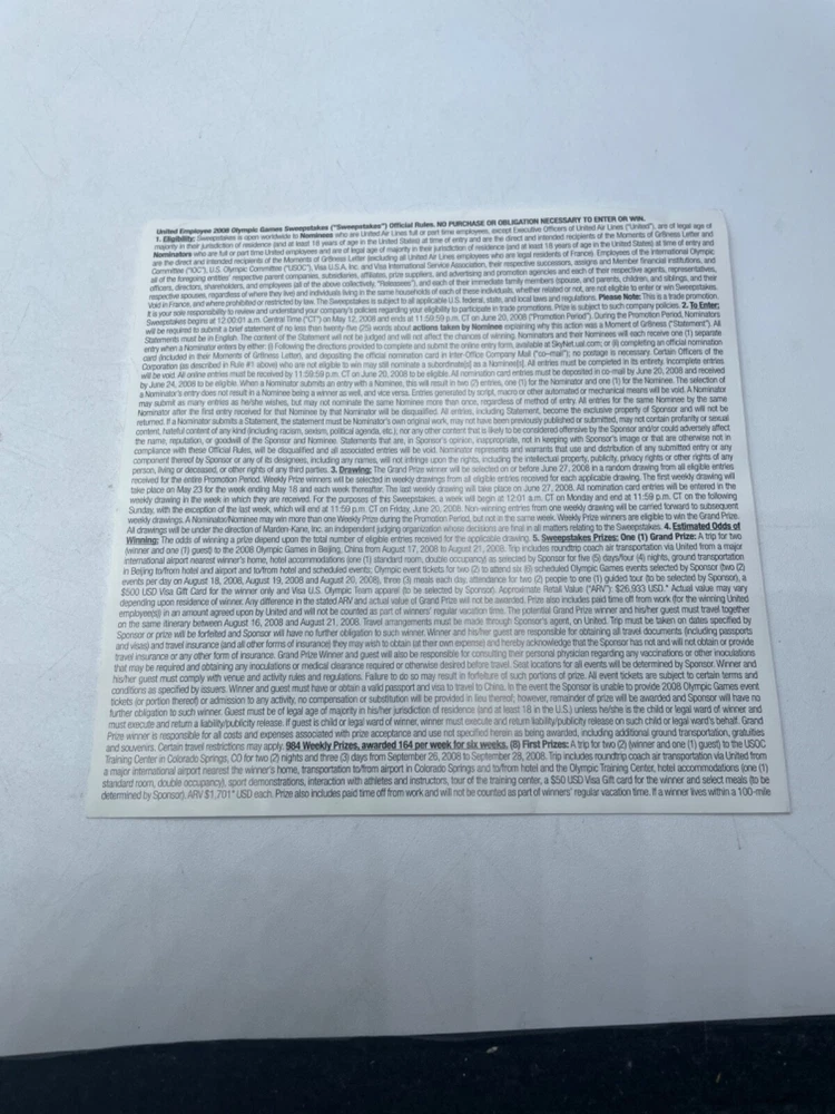 United Airlines Pamphlet and Pin Beijing Olympics 2008 Moments of Gr8ness Items are in used condition with normal signs of wear (marks, bends, writing on paper, yellowing, discoloring). The pin seems to have yellowed a bit with age, but still new in plastic. Comes with assortment of paperwork. Please look over photos.