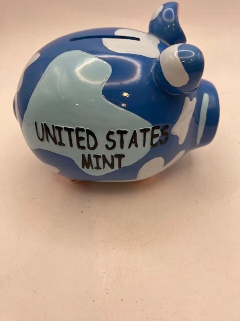United States Mint Blue Pig Piggy Bank Pre Owned Small 6x4