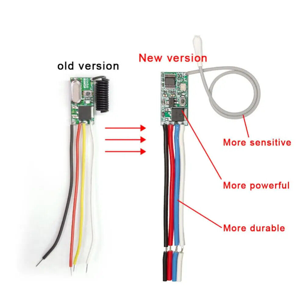 Universal Remote Control Switch 433mhz RF Relay Receiver DC 3.6V 6V 12V 24V 1CH Radio Module and Transmitter for LED Lamp DIY Description: Ultra low power,High sensitive response Taking function mode as the storage unit, a module can only store 5 (pairs) functions at most, such as: The module can remember 5 "jog keys", or 5 pairs of "interlock keys", or 5 "self-lock keys", or a mixed 5 functions, such as remembering two jog keys Key, two self-locking keys, a pair of interlocking keys. Remote control distance: about 30 meters in an open environment, can be used on partition walls Scope of application LED light, LED light string, Christmas tree light string, light control switch Specifications: Working voltage: DC 3.6V~24V Maximum load: 2A Static current: 3.6 mA ~ 5.5mA Working frequency: 433MHz Reception sensitivity: ≥ -107dBm Output DC3.6V~DC24V Size: 22.5 mm x 11mm x 8mm (length × width × high) Mini size support coding format 1527 learning code Input: DC3.6V~DC24V Output: DC3.6V~DC24V Modulation mode:ASK (superheterodyne) Appearance size: 22.5mmx 11mm x 8mm (length × width × high) Number of stored remote controls: ≤ 10 Working mode: Momentary, Toggle, Latching Mode Learning style: Learning Button Working temperature: -20 degrees 80 degrees Package Included: 1 pcs * Light Switch Receiver Module