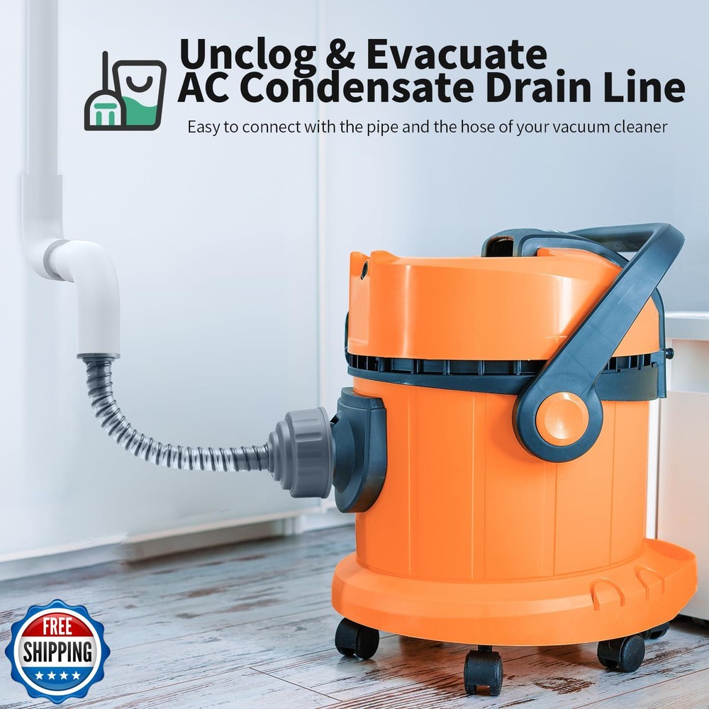 AC Drain Line Cleaner, A/C Condensate Drain Line Cleaner Adapter, Universal Fit AC Drain Line Unclogger, Compatiable With Most PVC Pipe Sizes, Easy To Use, Grey Features Are you still worried about expensive duct cleaning service ? Try this A/C HVAC drain cleaner device! It can save you hundreds of dollars a year. Stop wasting money on expensive service calls! Amazing Little Drain Cleaner Tool: Everyone with a ac unit needs one. Simply attach the tool end of our cleaner to the hose and turn on the wet vacuum, the clear tube allows you to see all removed dirt and sediment. COMPATIBLE WITH MOST SIZE TUBES: Please make sure your drain line has a 1-inch opening before ordering. The larger section is designed to fit wet vac 1.25", 1.50", 1 7/8", and 2 1/2" hoses. Can be used in diverse daily piping. This product packaging includes: A/C Drain Lines * 1, adapter * 2 (Attention: One of the adapters has been installed in the air conditioning drain pipe) Keep It Clean: Use the AC drain cleaner every 6 months to prevent clogs and maintain a clear AC drain line, you can ensure your system runs efficiently Material:Wet vac attachment made of high-quality ABS Plastic and PVC tube to Unclog and Evacuate A/C HVAC Drain Lines. Shipping Free & Fast Shipping: We offer free shipping to most of the USA with a normal delivery time of 3-7 days. However, due to the current situation, additional delivery time (up to 3 weeks) may be required for some items. Alternative Carriers: We may use alternative carriers (e.g., USPS, FedEx, UPS) to ensure your package arrives safely and on time. Due to the use of multiple carriers, we are unable to provide a tracking number automatically. Handling Time: Orders are processed and shipped within 1-2 business days of receiving cleared payment. Shipping Restrictions: Shipping to Alaska, Hawaii, Puerto Rico, Guam, and other US territories may incur shipping charges or delivery restrictions. Please contact us before ordering, or your order can be refunded/cancelled. State Restrictions: Certain items may not be shipped to California due to state regulations. Contact for Tracking Updates: If you require tracking updates or have any concerns about the delivery of your order, please feel free to contact us, and we will be happy to assist you. Return Policy 30-Day Hassle-Free Returns: If you are not completely satisfied with your purchase, you can return the item for free within 30 days of receiving it for a full refund or exchange. Easy Return Process: Contact us, and we will provide you with a prepaid return shipping label and detailed instructions. No Restocking Fee: There are no restocking fees for returns. However, the buyer is responsible for return shipping costs if the return is not due to a seller"s error. Refund Processing: Refunds will be processed within 1 business day of receiving the returned item in its original condition. Feedback Your feedback is extremely important to us. We strive to provide the best products and customer service possible. If you are satisfied with your purchase, please take a moment to leave us a positive review. If you have any concerns or issues with your order, please contact us before leaving negative feedback. We are committed to resolving any problems and ensuring your satisfaction. Contact Us If you have any questions or concerns, please feel free to reach out to our customer support team. You can contact us through the eBay messaging system. We are available Monday to Friday, 9:00 am to 5:00 pm EST, and we will do our best to respond to your inquiry within 24 hours. Thank you for supporting our small family business!
