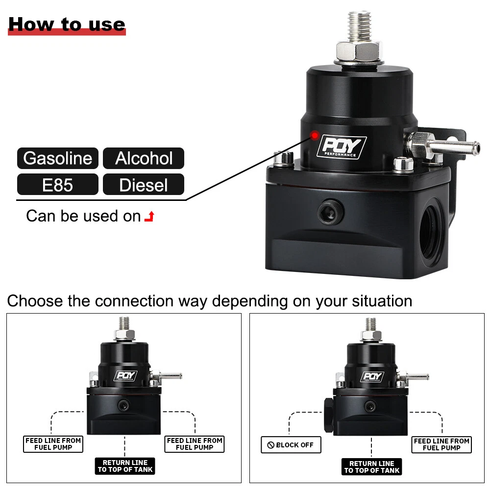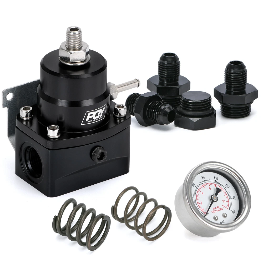 Black Adjustable Efi Fuel Pressure Regulator Bypass Gauge AN6 Feed & AN6 Return Overview Condition: 100% Brand New Color: As the picture Features: Feature : Adjustable from 3-70psi.(You need to replace the spring inside of the top if you need other psi which is out of the range, we provide three ranges of 3-20psi, 20-45psi which is pre-install, 45-70psi). Function : Adjust fuel injection volume appropriately to keep the stable pressure in the fuel system, saving fuel consumption. 3 Types Of Pressure Springs: 3-20psi, 20-45psi, 45-70psi (suitable springs can be replaced as you needed, and the pressure of the springs can be adjusted by adjusting the knob of the regulator). Tips: If your fuel pressure requirement is between 20 to 45 psi, the factory installed regulator spring is the proper spring. Tips: If your fuel pressure is required to be between 3-20 psi or 45-70 psi, insure the pressure adjustment set screw is backed out all the way, remove the 4 cover screws and cover, remove the factory installed spring, replace it with a suitable spring, and reassemble the regulator. What You Get: 1x fuel pressure regulator, 1x gauge, 2x -6AN fittings for feed and supply lines,1x -6AN return line fitting,1x AN8 end cap, 3x pressure springs(you can cap off one feed if you only need 1 feed). Material: CNC-machined with aluminum billets, sturdy, resistant to high pressure and high temperature, not prone to rusting, and prolonging service life. Fitments Universal, can be used with E85 or alcohol. Items Included 1x fuel pressure regulator, 1x gauge, 2x -6AN fittings for feed and supply lines, 1x -6AN return line fitting, 1x AN8 end cap, 3x pressure springs As pictures shown Note Provide a tracking number with every order, please buy with confidence! Please allow differences due to manual measurement. No installation guides are included, we highly recommend seeking professional installation. The color of the actual items may be slightly different from the listing images due to different computer screens. For any inquiries, please write to us. 💯After-Sales Shipping🚚 💰Payment Q & A💬 Contact Us📧 💯After-Sales For any installation or usage issues, please send us photos or videos for assistance. If you are unsatisfied, please contact us before leaving feedback. We are committed to resolving any issues and ensuring customer satisfaction. We offer free returns and exchanges within 30 days of purchase. If you need to return an item, please select "didn't like them" as the reason to ensure prompt processing. Thank you! Shipping🚚 We ship your order within 2 business days of receiving full payment. Delivery typically takes 3-7 business days to most cities. Domestic orders are shipped via USPS, UPS, or FedEx from our US warehouse and usually arrive within 3-5 business days. We ship to the address on your eBay account, not your PayPal account. Please update your eBay shipping address during checkout if it's different. We provide a tracking number for online shipment status updates. 💰Payment PayPal is the preferred payment method. Orders will be shipped after payment clears. Payment is expected within 7 days; otherwise, an Unpaid Item Dispute will be filed with eBay. Q & A💬 Q: When will the item be shipped out? A: This item will be shipped within 2 business days once payment is completed. Q: Where is my tracking number? A: Please log in to your account, click "my eBay"-->"my summary", or open your email box and find the shipping notification email. Q: How do I return an item? A: Our store accepts returns. Items must be returned within 60 days. Refunds will be given as money back. Please contact our customer service before you return an item. Contact Us📧 If you have any questions, please contact our Customer Service Team by clicking "Contact seller" in "Seller information". Emails will reply within 1 business day during business hours.