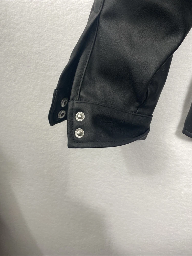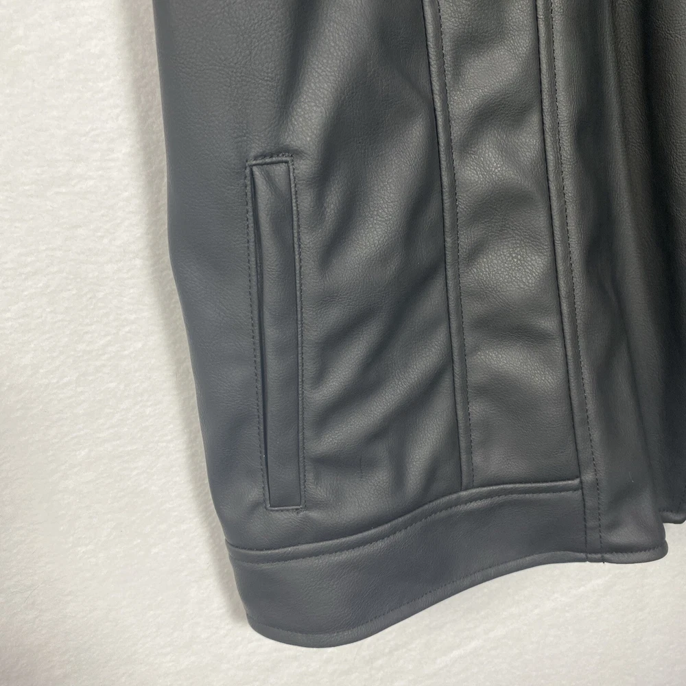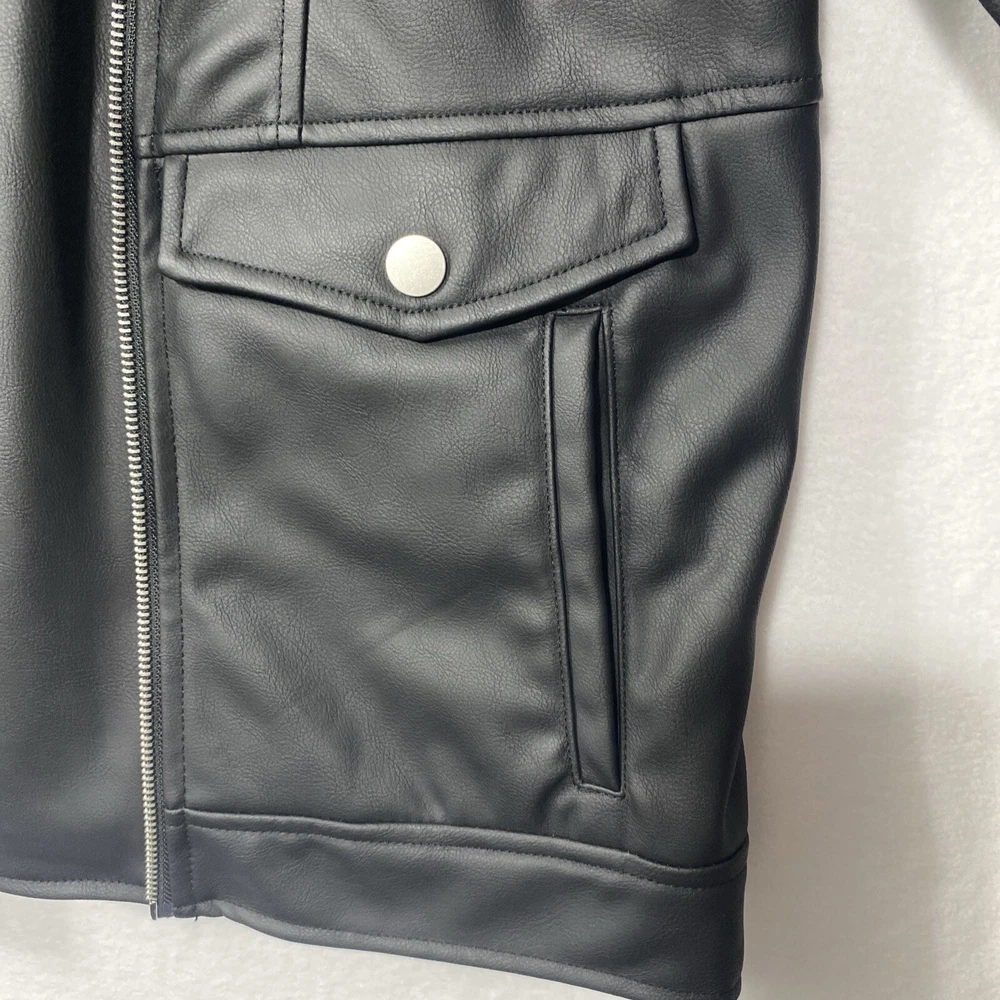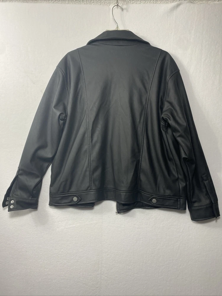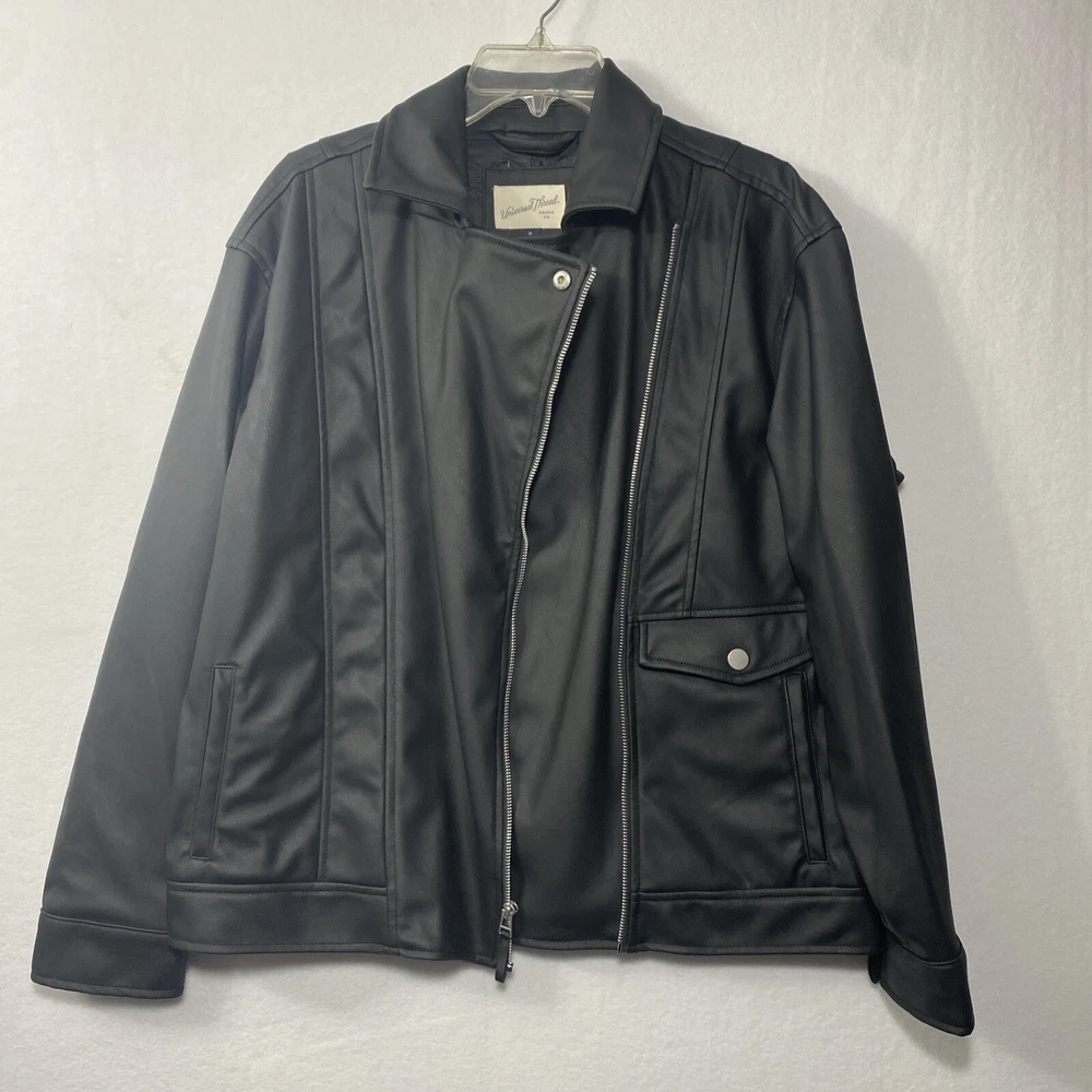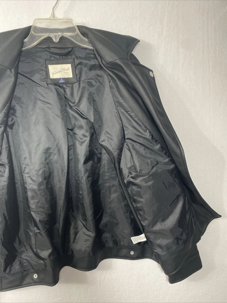 This Universal Thread woman's jacket is a stylish addition to any wardrobe. The black jacket is made with a polyethylene outer shell material and features a zip closure. The jacket is lined with polyester and has insulation material made of polyester. It comes in a size medium, with a regular size type for women. The jacket has a moto style and is perfect for university-themed events. It also features pockets, making it practical and functional for everyday wear.