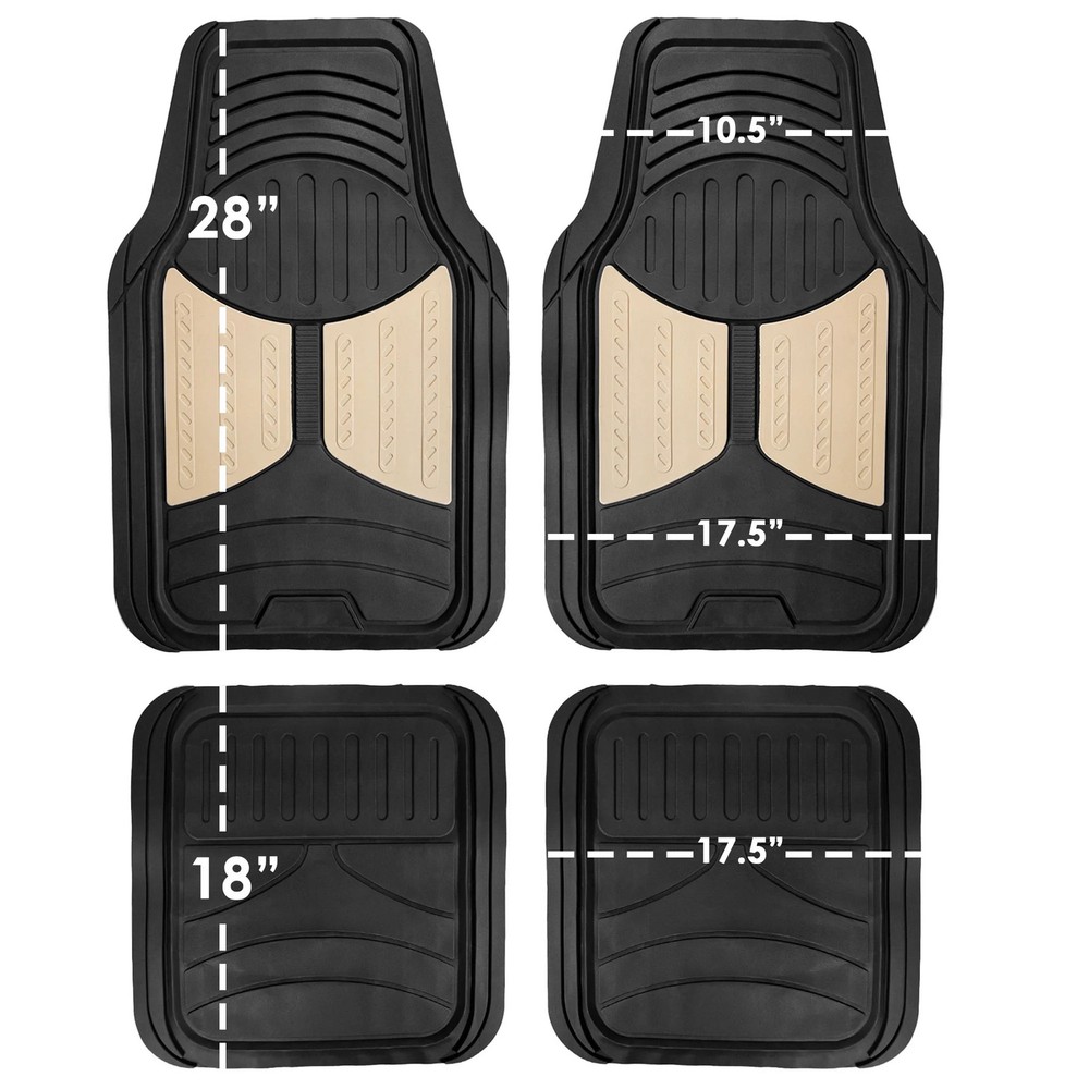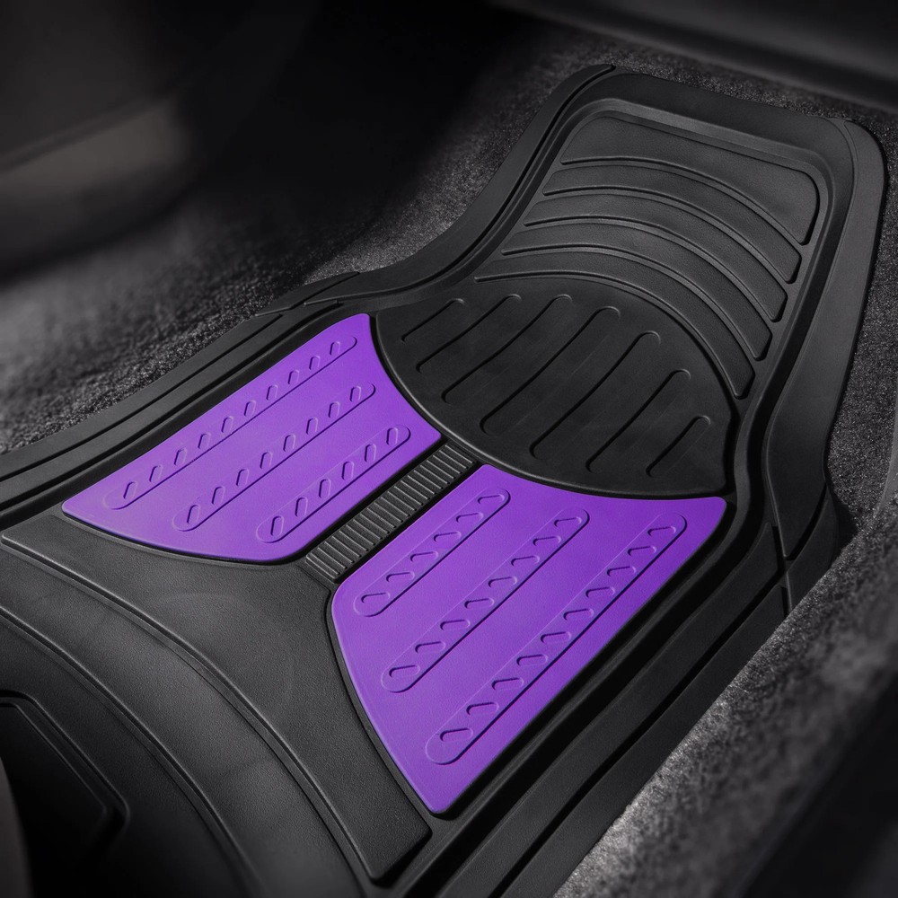 The FH Group's quirky Monster Eye Floor Mats are made trimmable to fit your vehicle. Waterproof and stain resistant, these floor mats are perfect for protecting your vehicle from dirt and stains. Top it off with our Air Freshener! This refreshing scent is exquisite, powerful, and will make your ride more enjoyable. A simple accent to your car but it makes all the difference. Manufacturer Part Number: AFF11313PURPLE Package Includes: 2 front floor mats,2 rear floor mat Dimensions: Front: 30" x 17.7", Rear: 17.7 x 18" Material: Rubber Cleaning tip: Easy to clean - vacuum or use soap and water; air dry Trim-to-fit to match all your needs Waterproof and stain resistant , Universal Tall outer ridges prevent fluids from leaking onto carpets Heavy nibbed backing secures mats in place Available in multiple colors