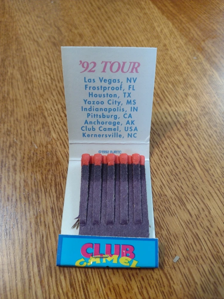Unstruck NOS MATCHBOOK: CAMEL THE HARD PACK '92 TOUR. CLUB CAMEL . MB166