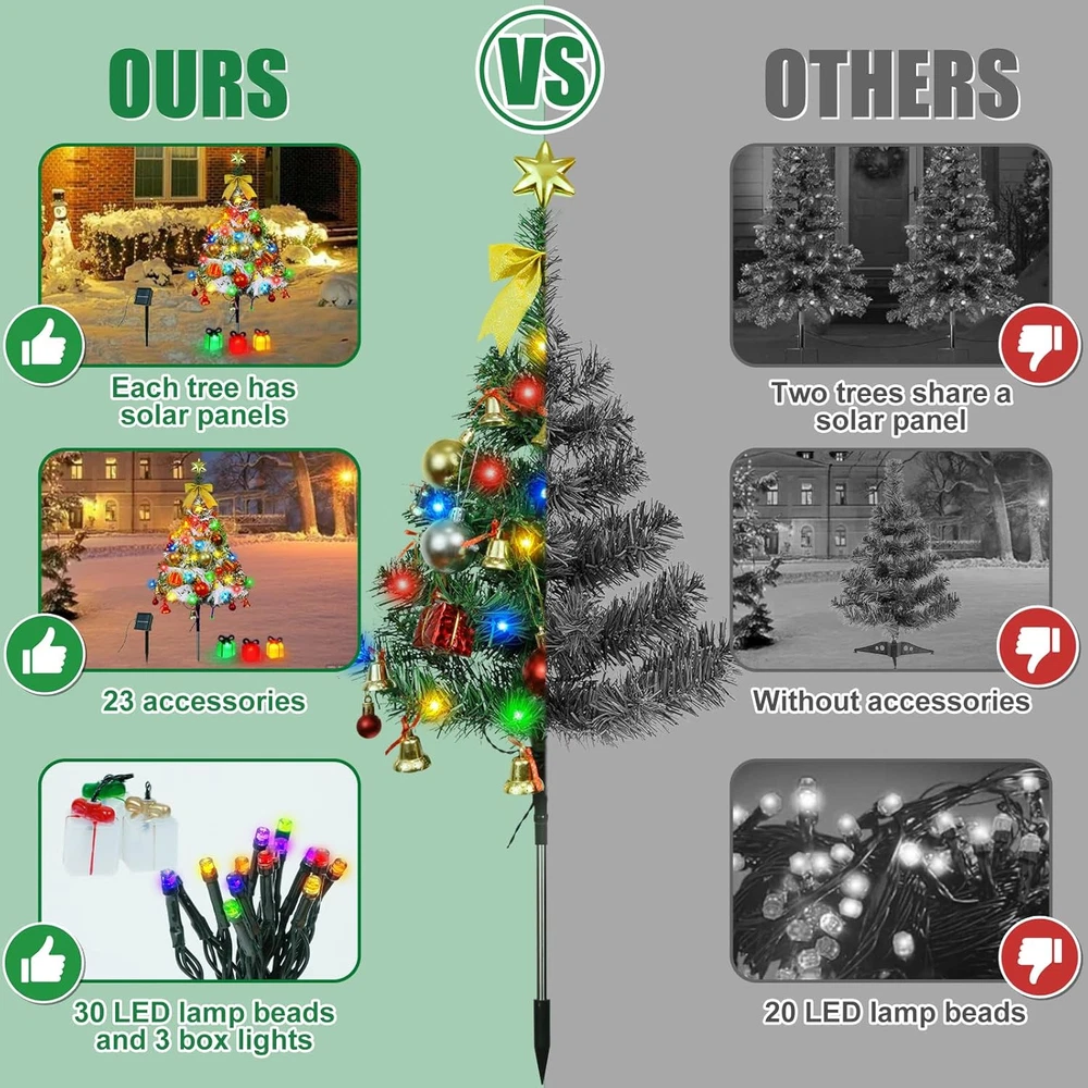 Store New Arrivals Add to Favorite View Feedback Contact Upgraded Set Solar Christmas Tree Lights outside Christmas Decorations 35 In, with 66 LED Multi-Color Lights 6 Box Lights & 46 Xmas Accessories, for outside Pathway Garden Yard Decor, 2Pack Description Item dimensions L x W x H 14 x 14 x 30 inches Number of Light Sources 33 Item Dimensions 14 x 14 x 30 inches Color GREEN Light Color Multicolor Material Metal Material Type Metal Theme Christmas Frame Material Metal Recommended Uses For Product holiday celebrations (Christmas), outdoor decorations for parties or events đăUpgraded outdoor Christmas decorationă You will get 2 sets of Christmas trees, independent solar charging, each stump is 35 inches high, equipped with 30*multi-color LED Lights, 3*luminous gift boxes, 1*gold star treetop, 1*gold bow, 3*gift boxes (1 red, 1 gold, 1 silver), 6*balls (2 gold, 2 red, 2 silver), 4*red berries, 8*gold bells. Each Christmas tree can be decorated with 33 light strings and 23 accessories đă8 Modes Solar Christmas TreeăOur solar Christmas decoration outdoor tree has 8 light modes with two buttons, OFF/ON is the switch button, and the MODE button can adjust the various light modes you want, and the light effects such as constant light, flashing, fast flash and variable frequency flashing bring you a lively atmosphere. Whether it is day or night, it looks great đăSolar Powered and IP65 WaterproofăQuick charging and long lighting. Automatically charge during the day and automatically light up at night. It can be used continuously for 8-12 hours after being fully charged, without turning it on/off every day. IP65 waterproof, no need to worry about bad weather such as rain, snow, wind, etc. It also keeps working well in winter, please wipe it clean when it snows, let it continue to fully absorb the sunlight đăEasy to assembleăJust open the branches, wrap the light string around the branches with wires, put various accessories on the tree in the way you like, and then insert it into the ground. Small outdoor lighted Christmas trees are perfect for Christmas, add them to your home, sidewalks, patios, and anywhere you want them to appear đăOutdoor Christmas decorationăThe solar Christmas tree is made of high-quality environmentally friendly ABS material, which truly simulates a pine tree. It is larger than other Christmas trees, 35 inches high and 11.8 inches wide. The size is moderate, perfect for outdoor use, gardens, lawn driveways, sidewalk patios, balconies, graveyards, cemeteries, flower beds, backyards, courtyards Product Description ABOUT US We offer the best prices around on high quality products. Our E-store includes media such as books, movies, music and games while offering electronics, toys, sporting apparel, clothing, tools, general home, garden items and more. SHIPPING We are always working hard to ensure your package arrives as soon as possible. Please understand that some factors like weather, high postal traffic, and the performance of shipping companies are outside of our control. We offer free shipping to the lower 48 states and ship within 2 business days of payment, usually sooner. We do not accept P.O. Boxes. Please provide a physical address. For shipping outside of the continental USA, we only use eBay's Global Shipping Program.The item is shipped to KY and then sent to the rest of the world. International customers are responsible for all duties and taxes. Continue to check out in order to calculate costs for shipping the item to your country. Messages regarding eBay's Global Shipping Program MUST be directed at eBay EXCLUSIVELY. RETURNS We offer a 30-Day Return Policy on items which you are not completely satisfied with. You have the option for a full-refund or an exchange of the item. No returns are available on items shipped outside of the USA. PAYMENT We accept PayPal. CONTACT US This page content is yet to come Please ad us to your favorite seller and visit again later Thank You CUSTOMER SATISFACTION We try our very best to make sure every customer is completely satisfied. If there's a problem, message us! We're happy to help. WE ACCEPT Copyright © 2021 AutoDS. | All Rights Reserved