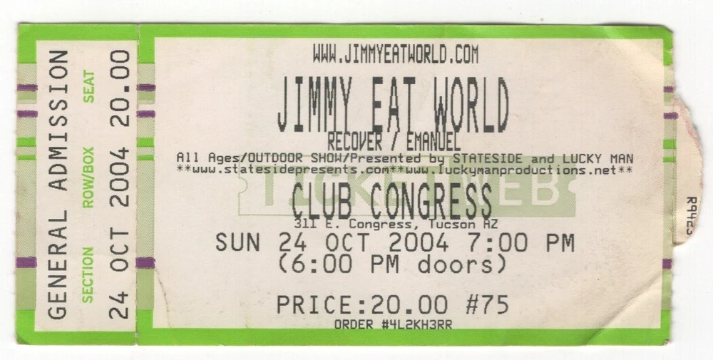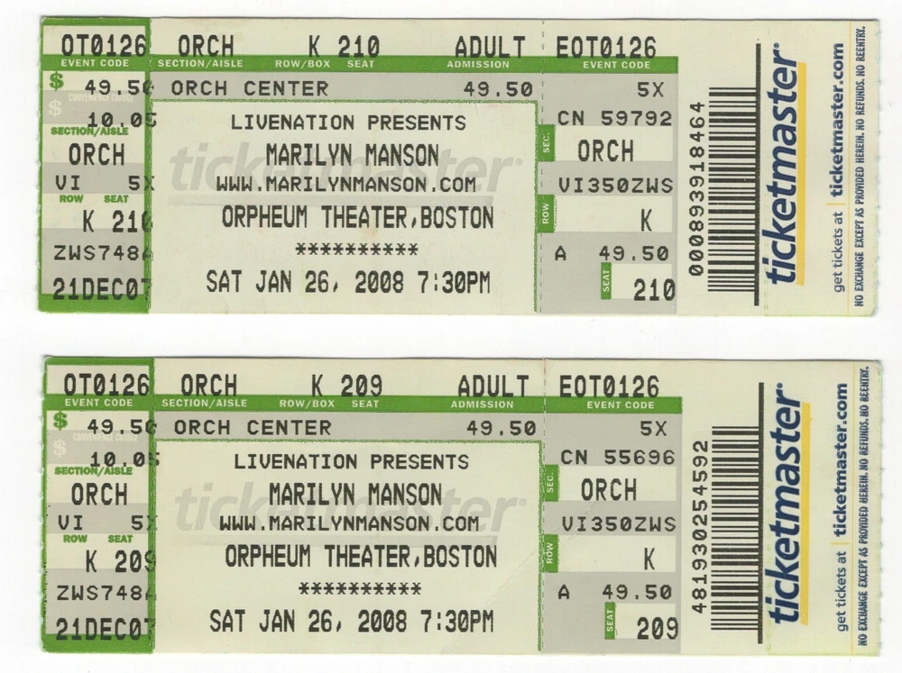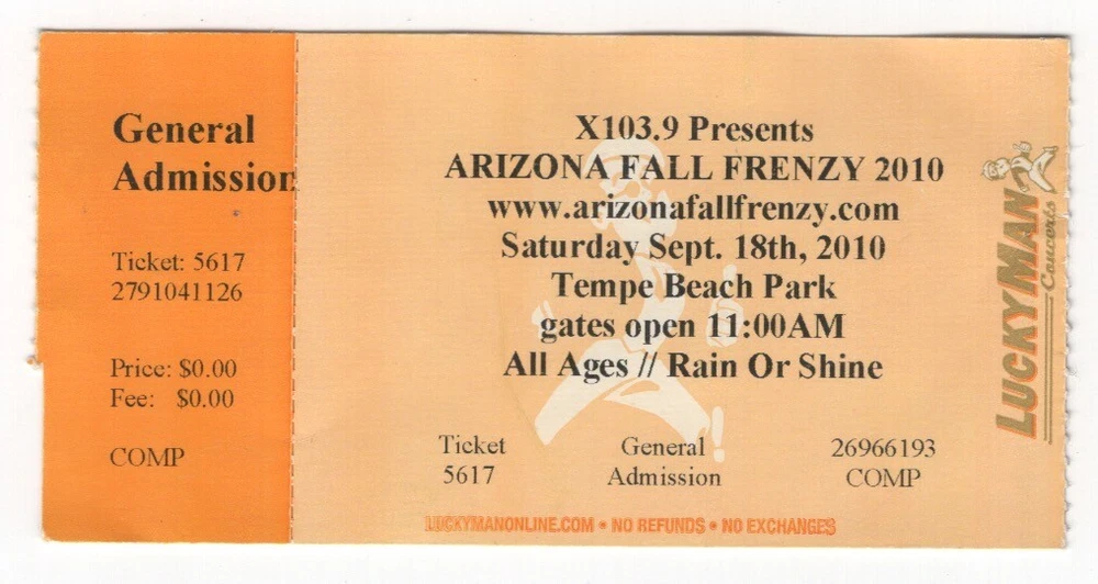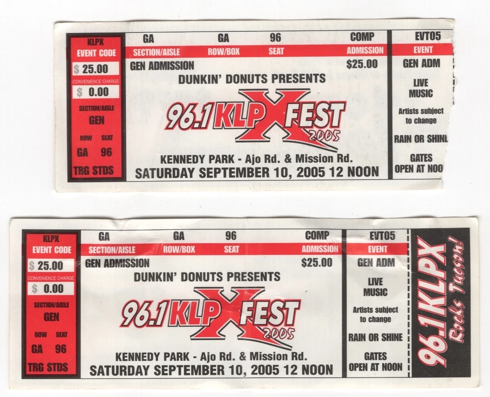 Lots of concerts/no concerts/sports used ticket stubs Price is set but if you purchasing more than one an offer could be made. Shipping is $3.50 with a $1.00 additional.. Ships in a bubble mailer.
