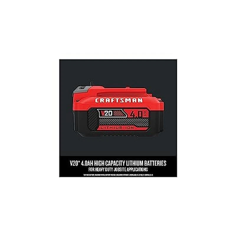 You may also like 20V 2.0Ah Lithium-Ion Battery Long-lasting Power Lightweight & Compatible New 31.82 USD 33.49 USD Free shipping 5% off About this item EXTENDED RUNTIME: CRAFTSMAN battery is made for heavy duty jobsite applications IMPROVED POWER: Premium grade high energy cells LONGER LIFE: Resulting in an extended battery life BATTERY CHARGE FEEDBACK: 3 LED State of charge indicator MAXIMUM PRODUCTIVITY: No memory and virtually no self-discharge Pack of (2) V20* 4. 0Ah High Capacity Lithium batteries › product details Number of Batteries:2 Lithium Ion batteries required. (included) Brand:CRAFTSMAN Battery Cell Composition:Lithium Ion Recommended Uses For Product:Power Tool Unit Count:1 Count You may also like Toddler Step Stool Kitchen Tower Safe Durable Easy Reach Self-Help Skills New 75.07 USD 79.02 USD Free shipping 5% off Tree Double Hammock Hanging Durable Polyester W/ 2 Chains 2 S-Hooks Blue Camp 51.17 USD 53.86 USD Free shipping 5% off Adjustable Foldable Kids Step Stool Non-Slip Bathroom Potty Training Helper New 62.66 USD 65.96 USD Free shipping 5% off Compact Design 7 Cup Water Filtration Pitcher Ready Pour 5 Stage TDS Meter New 28.7 USD 30.21 USD Free shipping 5% off 2 Drawer File Cabinet W/ Charging Station USB Ports & Dynamic Lighting 57.44 USD 60.46 USD Free shipping 5% off Reversible Frame Pump Hybrid Bicycle Pressure Gauge Pivoting T-handle 29.39 USD 30.94 USD Free shipping 5% off 6 Piece Anti-Microbial Towel Set Aqua - 2 Bath Towels, Hand Towels, Washcloths 26.24 USD 27.62 USD Free shipping 5% off 12-Quart Stainless Steel Stock Pot with Glass Lid for Preparing Amazing Sauces 28.09 USD 29.57 USD Free shipping 5% off Sugar Powder & Honey Blend 340 Servings Survival Emergencies Camping Food 25.81 USD 27.17 USD Free shipping 5% off 3100psi Pressure Washer Hose 50ft M22 Fittings Flexible Hybrid Polymer New 56.71 USD 59.69 USD Free shipping 5% off Matte Black Frame Ribbed Glass Toothbrush Holder Modern Bathroom Desk Organizer 16.98 USD 17.87 USD Free shipping 5% off 6 Quart Programmable Slow Cooker Serve 7 Stainless Steel Travel Friendly New 73.11 USD 76.96 USD Free shipping 5% off