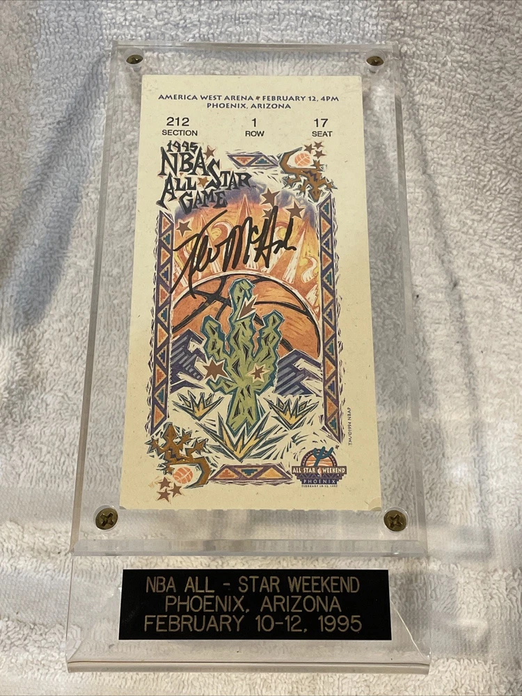 You are purchasing a VERY RARE circa 1995 NBA All-Star Game ticket stub autographed by Kevin McHale. This is a really cool piece! Ticket has been signed very boldly by Kevin in black sharpie in center of ticket. Mitch Richmond was ASG MVP that year. Ticket measures 3x6 inches. Ticket shows minimal of any wear. Overall, ticket grades MINT! Signature has been authenticated by PSA and has serial numbered PSA sticker affixed as shown. Ticket will come in acrylic screw down holder as shown ready for display. NICE addition to any collection! Buyer pays $8.00 shipping. Shipping combined on multiple lots whenever possible. MN residents add 6.875% sales tax. Thanks for your purchases! Please check out my Ebay store for more great items!