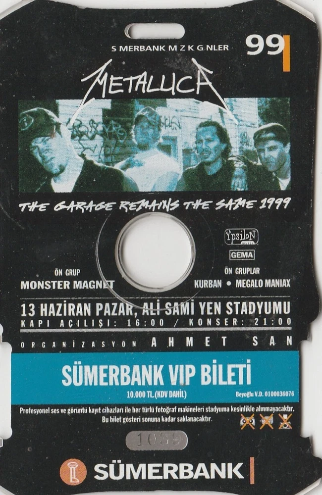 WE WILL SEND WITH REGISTERED SHIPPING .. VIP TICKET NO 1039 .. IT IS VERY RARE .. IT WAS HANGING FROM THE NECK DURING THE CONCERT ..
