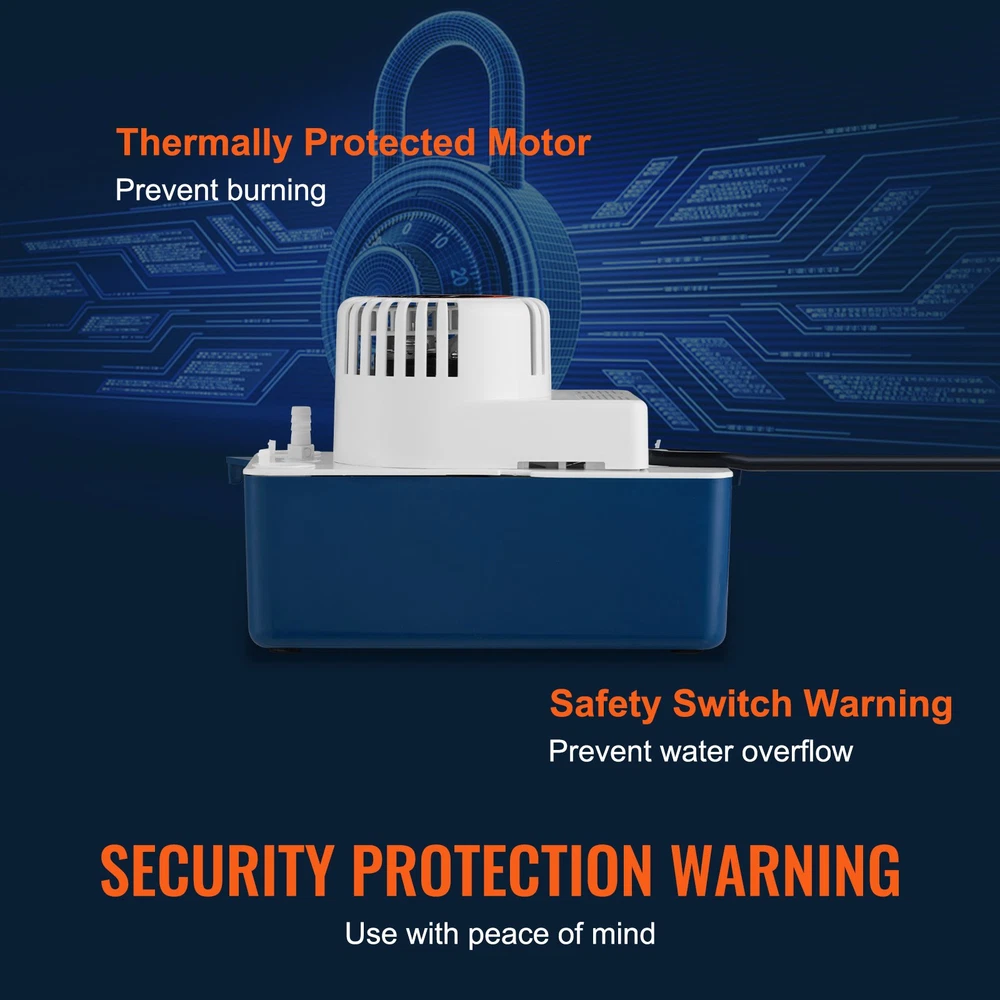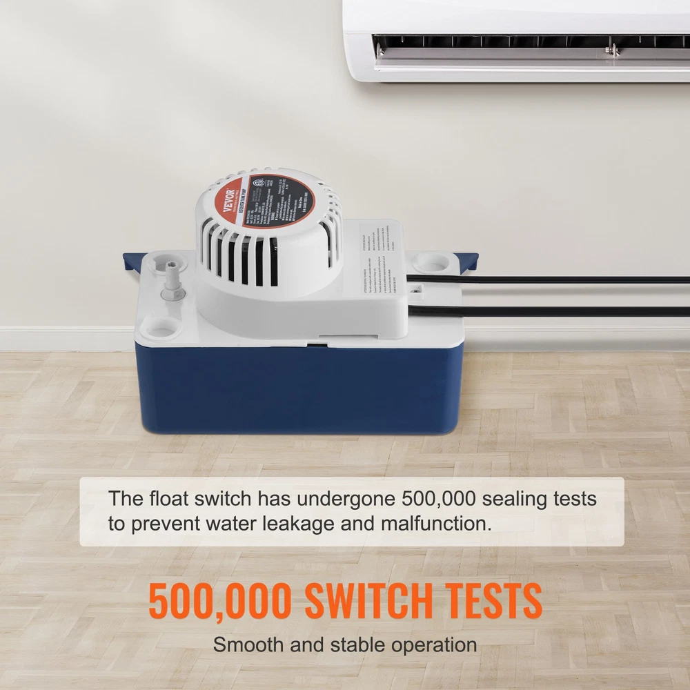 VEVOR Condensate Removal Pump, 1/50 HP, 65 GPH, 15 ft Lift, 115V Automatic AC Pump with Safety Switch & 20' Tubing for Air Conditioner, Dehumidifier, HVAC, Furnace, Ice Maker Water Drain VEVOR Condensate Removal Pump, 1/50 HP, 65 GPH The VEVOR Condensate Removal Pump is a durable and efficient solution for removing condensate water from air conditioners, dehumidifiers, HVAC systems, furnaces, and ice makers. Its 1/50 HP motor ensures optimal performance, handling up to 65 gallons per hour (GPH) with a maximum lift of 15 feet. Enhance your HVAC system's efficiency and reliability with this top-grade condensation pump. Features: Powerful Motor: 1/50 HP motor handles up to 65 GPH effectively. High Lift Capability: Max lift of 15 ft, perfect for various applications. Automatic Operation: Equipped with an automatic on/off switch for ease of use. Safety Switch: Integrated safety switch ensures secure operation. Versatile Application: Ideal for air conditioners, dehumidifiers, HVAC, furnaces, and ice makers. Durable Construction: Built with high-quality ABS+PP materials for long-lasting use. Comprehensive Accessories: Includes 20 feet of tubing for convenient installation. Easy Maintenance: User-friendly design simplifies maintenance tasks. Specifications: Max Power: 1/50 HP Water Tank Capacity: 1/2 gal Product Size: 11.2" x 5" x 7.1" (283.5 x 127 x 181.8 mm) Inlet Diameter: 1" (25.4 mm) Outlet Diameter: 0.4" (10.2 mm) Product Weight: 3.7 lbs (1.7 kg) Max Flow: 65 GPH Max Head: 15 ft (4.6 m) Rated Voltage: AC 115V/60Hz Optimize the performance of your air conditioning and HVAC systems with the VEVOR Condensate Removal Pump. Durable, reliable, and efficient – the perfect addition to keep your environments dry and running smoothly.Specifications:- Length: 29.5 in, Width: 18.5 in, Height: 19.0 in VEVOR Condensate Removal Pump, 1/50 HP, 65 GPH, 15 ft Lift, 115V Automatic AC Pump with Safety Switch & 20' Tubing for Air Conditioner, Dehumidifier, HVAC, Furnace, Ice Maker Water Drain VEVOR Condensate Removal Pump, 1/50 HP, 65 GPH The VEVOR Condensate Removal Pump is a durable and efficient solution for removing condensate water from air conditioners, dehumidifiers, HVAC systems, furnaces, and ice makers. Its 1/50 HP motor ensures optimal performance, handling up to 65 gallons per hour (GPH) with a maximum lift of 15 feet. Enhance your HVAC system's efficiency and reliability with this top-grade condensation pump. Features: Powerful Motor: 1/50 HP motor handles up to 65 GPH effectively. High Lift Capability: Max lift of 15 ft, perfect for various applications. Automatic Operation: Equipped with an automatic on/off switch for ease of use. Safety Switch: Integrated safety switch ensures secure operation. Versatile Application: Ideal for air conditioners, dehumidifiers, HVAC, furnaces, and ice makers. Durable Construction: Built with high-quality ABS+PP materials for long-lasting use. Comprehensive Accessories: Includes 20 feet of tubing for convenient installation. Easy Maintenance: User-friendly design simplifies maintenance tasks. Specifications: Max Power: 1/50 HP Water Tank Capacity: 1/2 gal Product Size: 11.2" x 5" x 7.1" (283.5 x 127 x 181.8 mm) Inlet Diameter: 1" (25.4 mm) Outlet Diameter: 0.4" (10.2 mm) Product Weight: 3.7 lbs (1.7 kg) Max Flow: 65 GPH Max Head: 15 ft (4.6 m) Rated Voltage: AC 115V/60Hz Optimize the performance of your air conditioning and HVAC systems with the VEVOR Condensate Removal Pump. Durable, reliable, and efficient – the perfect addition to keep your environments dry and running smoothly. Specifications: - Length: 29.5 in, Width: 18.5 in, Height: 19.0 in × × × × × × × × × × × × × × × × × × × × × Shipping Policy - Order Processing: The expected delivery date will be provided as soon as possible after your purchase. Most items are shipped within 1-2 business days from our local warehouse, subject to availability. - Warehouse & Shipping Location: To ensure timely delivery, we ship from the warehouse nearest to your address. In rare cases, items may be shipped from a different location due to stock levels. - International Orders: Prices do not include import tariffs, taxes, or additional fees for international shipping. The purchaser is responsible for these costs. - Shipping Delays: While we strive to ensure timely delivery, delays may occur due to factors beyond our control such as weather, postal traffic, or carrier issues. Note: Items may ship from different locations depending on stock availability. Return & Refund Policy We accept returns within 30 days from the date of purchase. - Damaged or Defective Items: If you receive a damaged or defective item, Please provide a photo or video within 7 days of receipt to verify the issue. Once verified, we will offer a suitable solution. - Change of Heart:If you wish to return an item for any other reason, such as a change of heart or price dissatisfaction, please inform us in advance. The buyer is responsible for return shipping costs, and the item must be unused and in its original packaging. - Refund Process:Refunds will be processed within 3 business days after receiving and inspecting the returned item. Refund amounts may be adjusted based on the condition of the item upon inspection. Note: If buyer receives defective item Please contact us with necessary pictures or videos for above return situations. Once verified, We will offer you a suitable solution. Please do not send your return to the sender's address before consulting us. Shipping info Click the Shipping & Payments tab above the listing description for more info Click the Shipping & Payments tab above the listing description for more info! Additional delivery notes PICK UP OPTION Sorry, our items are NOT available for pick-up. PAYMENT Immediate payment is required upon selecting "Buy It Now" or upon checking out through the cart. We accept payment via U.S. PayPal accounts and all Major Credit Cards, Debit Cards & Google Pay. We are legally 