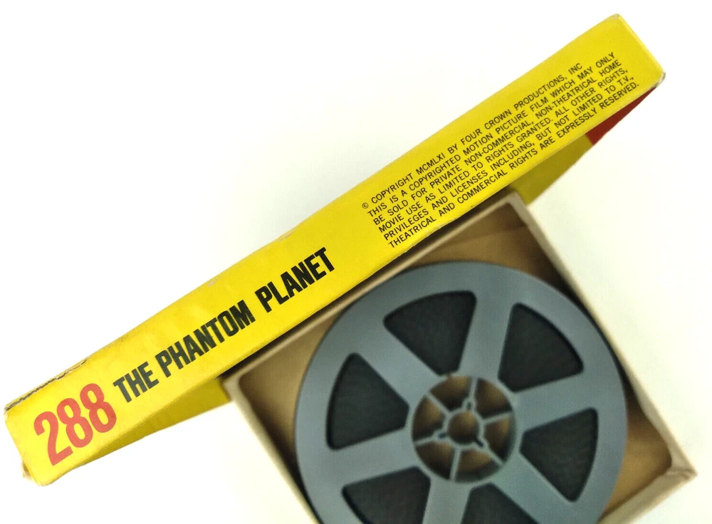 VINTAGE 1961 "THE PHANTOM PLANET" SUPER 8 mm FILM. #288 B & W FILM FROM KEN FILMS. FILM WAS CHECKED TO VERIFY CORRECT REEL IN BOX. AMERICAN INTERNATIONAL PICTURES, INC. FILM HAS NOT BEEN TESTED AND SOLD AS IS. -PLEASE KEEP IN MIND THAT WHEN YOU PURCHASE VINTAGE ITEMS, THEY MAY NOT BE PERFECT AND DEMONSTRATE CHARACTERISTICS OF AGE AND/OR USE. -ITEMS FOUND AT LOCAL ESTATE SALES HERE IN NORTHEASTERN PENNSYLVANIA. -ITEMS ARE SOLD AS FOUND. SOME ITEMS MAY NEED TO BE CLEANED! PLEASE BE SURE TO SEE ALL PHOTOS, AS THEY ARE A VITAL PART OF THE DESCRIPTION!
