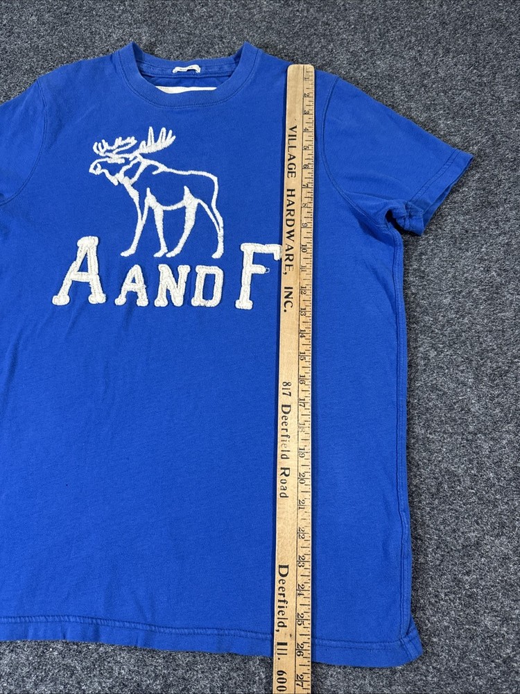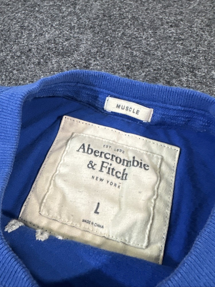 Abercrombie men’s soft Cotton Muscle T Shirt Size Large Bright blue color with embroidered moose and AF logo In perfect condition no flaws stains or damage, super soft t shirt. Tag size is Large but it’s Abercrombie muscle so see measurements as they run small. Fast free shipping included