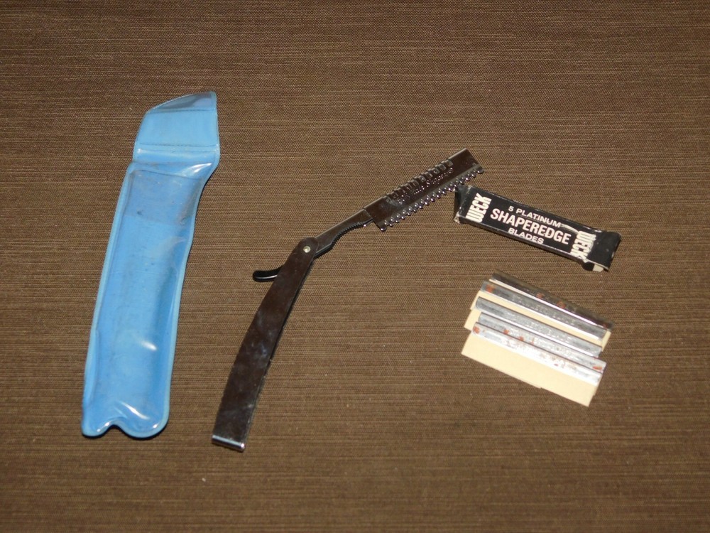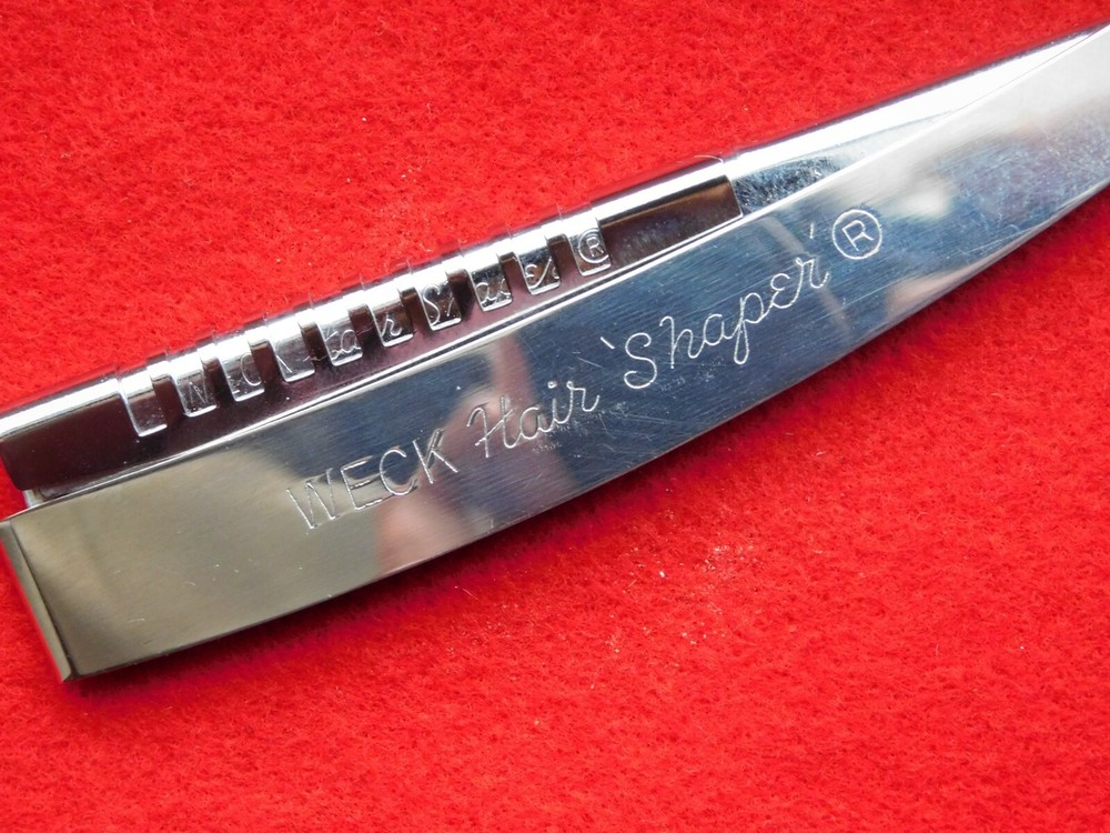 YOU ARE BIDDING ON..... VINTAGE BARBER WECK HAIR SHAPER with 5 PLATINUM SHAPEREDGE BLADES NEW OLD STOCK . SHAPER HAS SOME AGE WEAR/LIGHT SCRATCHES .RAZOR BOX SHOWS HANDLING/AGE WEAR..HAS AGE DISCOLORATION/SMALL TEARS. ...PLEASE VIEW PHOTOS FOR CONDITION.***PLEASE E-MAIL IF YOU HAVE A QUESTION OR WANT AN ADDITIONAL PICTURE....PLEASE VISIT MY EBAY STORE FOR ADDITIONAL VINTAGE ITEMS..THANK YOU***1V-BX0716-XXXX