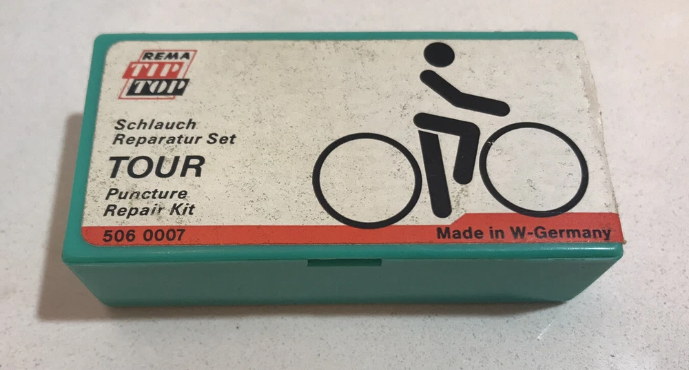VINTAGE BICYCLE TIRE TUBE REPAIR KIT "REMA TIP TOP" MADE IN W. GERMANY. Kit is not fully complete, but almost. Great condition, see photos! Feel free to ask any questions Thank you for checking out my listing