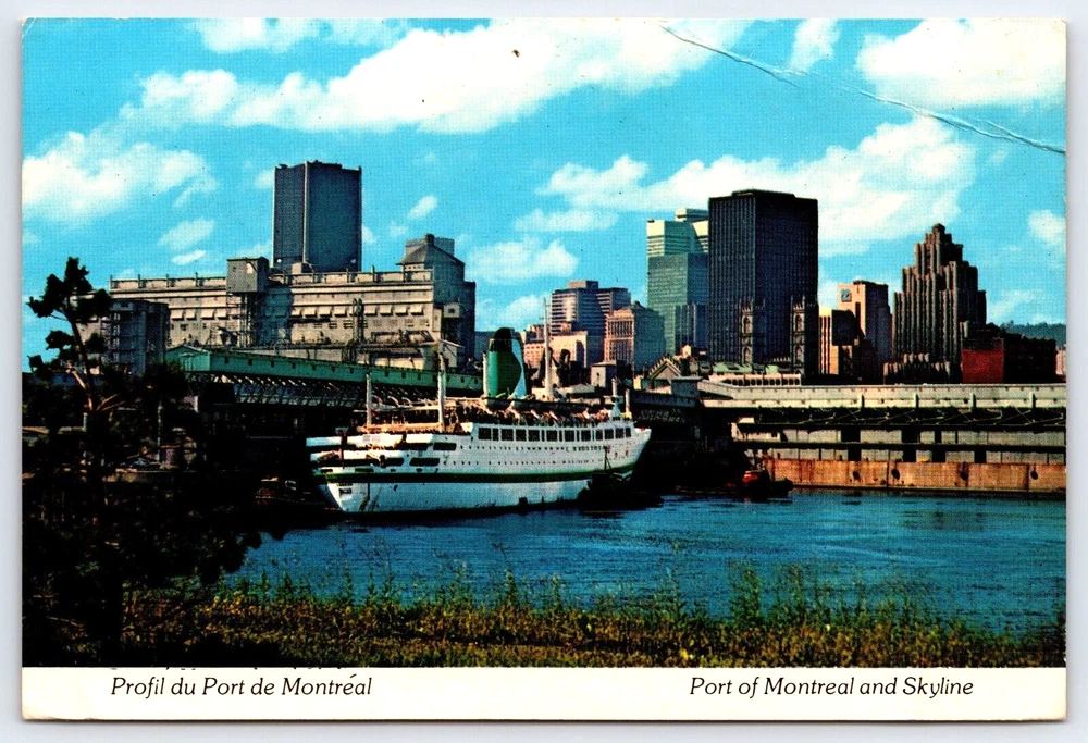 VINTAGE OLD ANTIQUE POSTCARD PORT SKYLINE BUILDINGS BOAT RIVER MONTREAL CANADA