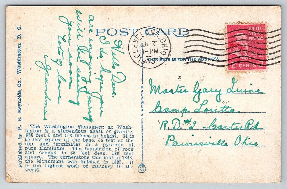 Stamp: Yes gtin13: DOES NOT APPLY Material: Paper Color: Multicolor Year Manufactured: 1953 Features: Divided Back, Stamp, Stamped, White Border, Original Genuine Antique Vintage Postcard Theme: Architecture, Cities & Towns, Community Life, Domestic & Family Life, Famous Places, Historical Figures, Landscapes, Roadside America, Seasons, Social History, Tourism, Postcard, Antique, Vintage, Ephemera, Collectible, Memorabilia, Old, Retro, History, Card, Mail, Paper Vintage: Yes Character: Postcard UPC: DOES NOT APPLY Size: Standard (5.5 x 3.5 in) Artist: Postcard Type: VINTAGE OLD ANTIQUE POSTCARD WASHINGTON MONUMENT Original/Licensed Reprint: Original Franchise: Postcard Orientation: Vertical City: Washington, D.C. Country: United States Brand/Publisher: B.S. REYNOLDS COMPANY Country/Region of Manufacture: United States Posted: Yes Region: District of Columbia Subject: Monument Occasion: Postcard Signed: Yes Featured Person: None Unit of Sale: Single Unit Postage Condition: Posted Continent: North America Location: Washington, D.C. USA Seller Notes: “Good Vintage Condition. See Pictures And Description Closely For Details.” Antique: Yes Finish: Matte Number of Items in Set: 1 Time Period Manufactured: 1950-1959 Era: Divided Back (1907-1915) Signed By: Sender