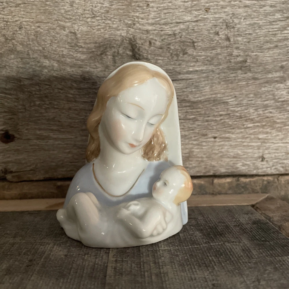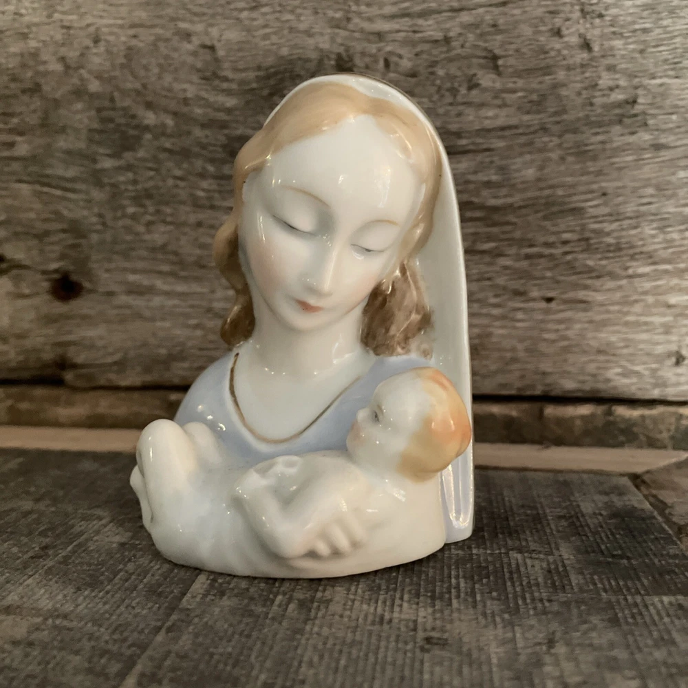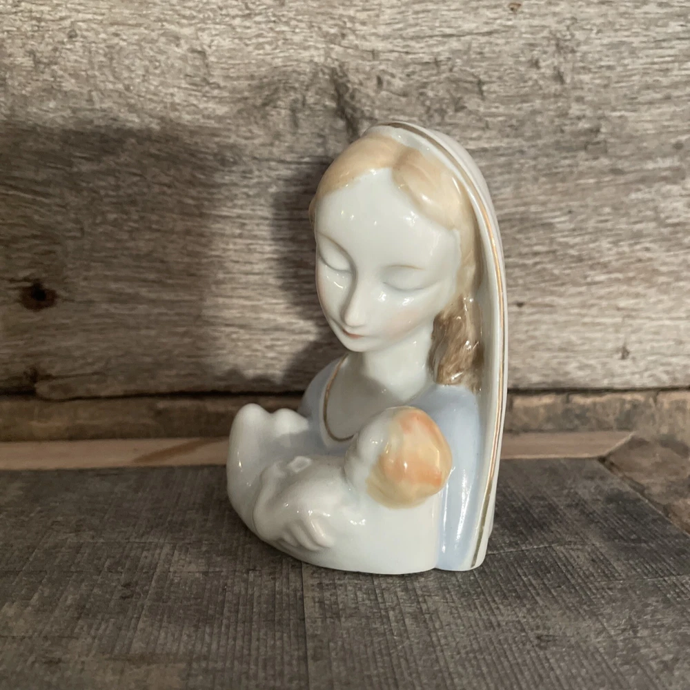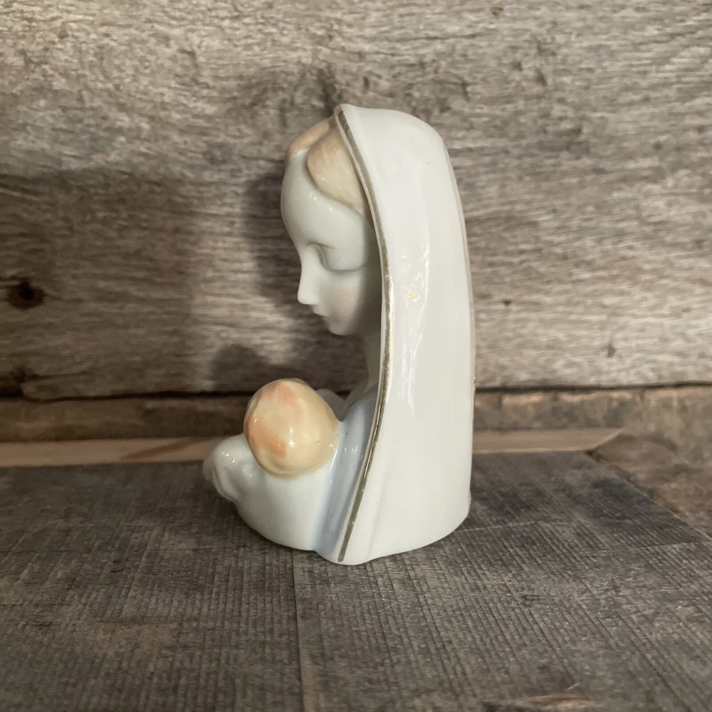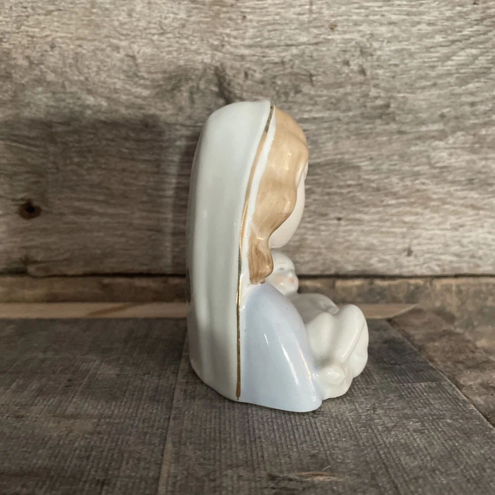 VINTAGE SMALL 3-1/2" MADONNA AND CHILD VIRGIN MARY PORCELAIN FIGURINE GOLD TRIM