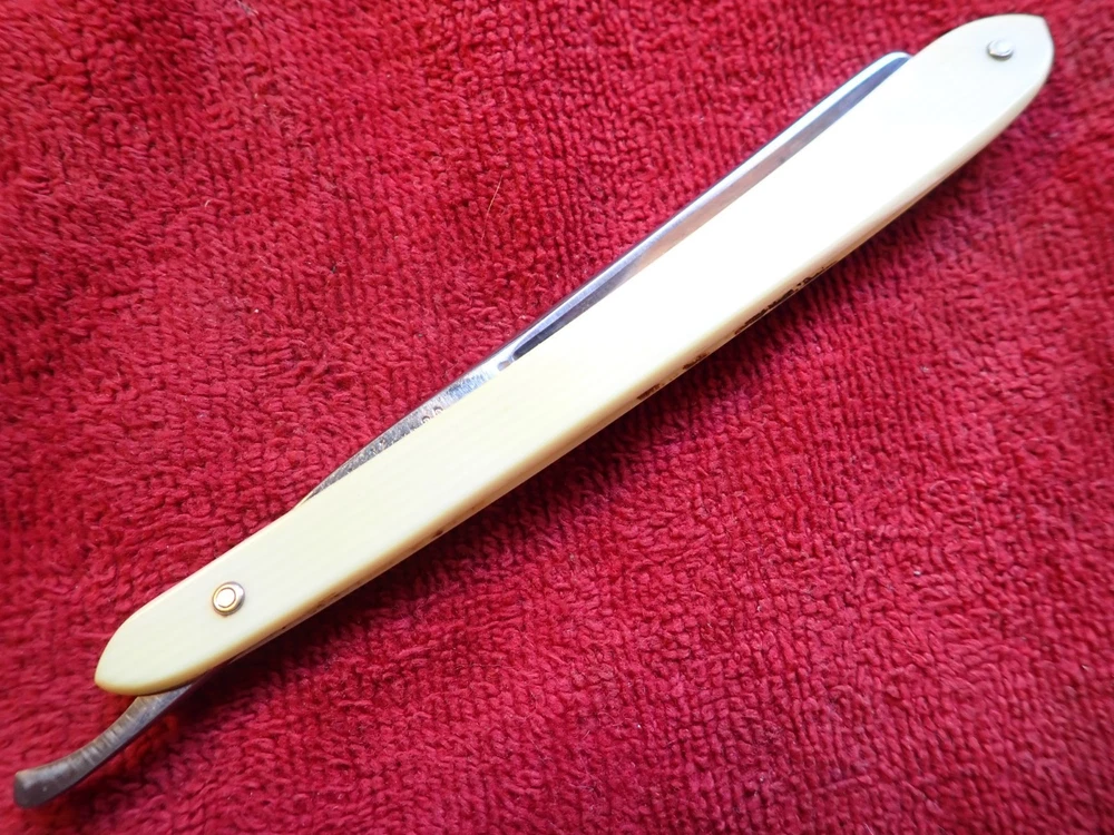vintage Geo. Worthington, Cleveland, Ohio straight razor with whitish handle