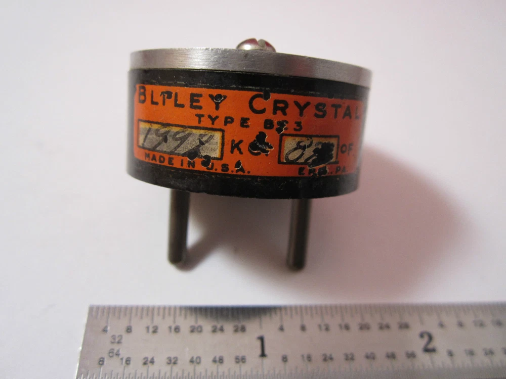 VINTAGE WWII QUARTZ RADIO CRYSTAL BLILEY BC3 1992 KC ?? FREQUENCY CONTROL BIN#2B i Sold as is. Thanks. TERMS OF USE Welcome to our SILO Ebay store. Please, review our terms and conditions, which has the purpose to clarify and help for a better business relationship with our customers. If you do not agree with any part of our company policies, please do not do any bidding in our items. IF YOU PLACE A BID IN OUR ITEMS We’ll consider that you have agreed to all the following Term of Use. ITEM CONDITIONS: Please, make a thoroughly inspection of the photos, description and conditions of each item you are interested, before placing your biding. SILO attempts to be as accurate as possible. However, SILO does not warrant that product descriptions or other content is accurate, complete, reliable, current, or error-free. If a product offered in our store is not as described, your sole remedy is to return it in unused condition. DISCLAIMER: Many of our items are previously USED products or REFURSBISHED, therefore they are sold “with all faults” or “AS IS”, unless otherwise specify in writing. The condition of the item is provided in the “ description”. RETURN POLICY : Our goal is to provide our customer with the best option for their needs. If you need to return item this rules will apply: We offer the buyer a two weeks (14 days) right to return the item. The buyer will be responsible for the cost of packing and shipping the item. Items MUST BE returned for any Refund. We do not offer partial refunds. Refunds will be given as money back. WARRANTIES OR RETURNS: NO WARRANTIES ARE EXPRESS OR IMPLIED. Items that are supposed to be operational according to the description in the listing can be returned if they are D.O.D. Items that are untested or are sold ‘AS IS’ can not be returned. DISCLAIMER OF WARRANTIES AND LIMITATION OF LIABILITY : All ITEMS OR PRODUCTS LISTED IN OUR EBAY STORE ARE PROVIDED BY SILO ON AN "AS IS" AND "AS AVAILABLE" BASIS, UNLESS OTHERWISE SPECIFIED IN WRITING. OUR SILO STORE MAKES NO REPRESENTATIONS OR WARRANTIES OF ANY KIND, EXPRESS OR IMPLIED, AS TO THE OPERATION OF ANY OF THE ITEMS LISTED, UNLESS OTHERWISE SPECIFIED IN WRITING. YOU EXPRESSLY AGREE THAT YOUR PURCHASE IS AT YOUR SOLE RISK. TO THE FULL EXTENT PERMISSIBLE BY APPLICABLE LAW, SILO STORE DISCLAIMS ALL WARRANTIES, EXPRESS OR IMPLIED, INCLUDING, BUT NOT LIMITED TO, IMPLIED WARRANTIES OF MERCHANTABILITY AND FITNESS FOR A PARTICULAR PURPOSE. SILO WILL NOT BE LIABLE FOR ANY DAMAGES OF ANY KIND ARISING FROM THE USE OF ANY PRODUCTS PURCHASED THROUGH OUR EBAY STORE, INCLUDING, BUT NOT LIMITED TO DIRECT, INDIRECT, INCIDENTAL, PUNITIVE, AND CONSEQUENTIAL DAMAGES, UNLESS OTHERWISE SPECIFIED IN WRITING. PAYMENT AND TAXES: Payment must be received within 7 days of the purchase date. We only accept payment through PAYPAL. For International orders we also accept PayPal and Bank Wire Transfer, but we reserve the right to refuse some kind of payment at our discretion. Decisions will be taken in case by case scenario due to previous problem with some international bank institutions. California residents will be charge with 9% Sales Tax. IMPORTAN INFORMATION FOR INTERNATIONAL BUYERS WE DO NOT make false statements on Custom Documentations. A purchased item will not be sent “as gift” and the value declared will be the price paid at the purchase. PLEASE, we aware that your purchase might be subject to custom duties, import restrictions and value-added taxes. IT IS YOUR RESPONSIBILITY to know all legal requirements for your purchase BEFORE you place a bidding. As a consequence of the widely different level of functioning of postal service around the word, we cannot guarantee delivery outside of the USA. For this reason, we highly recommend and many times required “certificate delivery” and insurance. If the item is returned or rejected from your country for any reason, we will refund you the cost of the items less any eBay fees and shipping cost. By placing a bid and eventually buying the item, YOU ARE CONFIRMING THAT YOU HAVE READ AND AGREED to this term of use, specifically regarding to the international sales, and these requirements are incorporated into the eBay sales terms. SALES LIMITATION: Some of the items listed on our store are only available within USA. Please make sure the item you selected could be sent to the country of destination you decided before engaging in any purchase. SHIPPING: We usually ship within 3 days of receiving cleared payment. We only combine items purchased and paid within the same calendar week (Monday through Friday). NO LOCAL PICK UP allowed. JURISDICTION: The Court in Los Angeles County, California will have exclusive jurisdiction in all dispute relate to the purchase of items through our eBay Store. CHOICE OF LAW: These terms and conditions will be governed and construed in accordance with California law. ADDITIONAL INFORMATION: Some of our items listed correspond to the same manufacturer, model, specifications, etc, nevertheless the serial number might be different. In some cases, we use the same photo for the same kind of product when they are strictly identical and there is only a variation in its serial number.